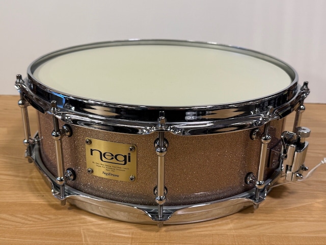 確かな技術で魅力的なドラムを作り続ける日本の老舗ドラムメーカー NegiDrumsのスネア です。 メイプルらしい明るいく反応の良いキャラクターです。 シェルのエッジ部分の少し下にスリットを設ける事で、アタックを少しマイルドにして、音に深みを出す特殊構造が用いられています。 5”の深さながらもしっかりとした太さも持ち合わせているスネアなので、ジャンルを問わずにおすすめできる一台です! [仕様] 〇サイズ:14"x5" 〇シェル:8mm Maple (with 2 Slits) 〇エッジタイプ:45 Degree 〇スネアベッド:Mix Style (Ludwig + Grestch) 〇フープ:2.3mm Stick Saver Hoop (10Tention) 〇ラグ: Classic Tube Lug 〇ストレイナー / バット:S-1 Small Die Cast Strainer / B-3 Small Die Cast Butt 〇スネアワイヤー: SW-1420BR 〇フィニッシュ:Half Brown Sparkle