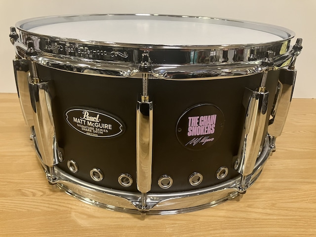 天鵞絨(ビロード)を纏った鋼音(はがね) < マンガンスチールとは、その名の通りスチールにマンガンを加えて靱性と延性を持たせ、その粘り強さと耐摩耗性の高さから列車の線路にも使われる様な鋼材です。 かつて一部の高級スネアにも採用され、現在では入手性・コスト面から限られたモデルにのみ使われる評価の高い素材です。 このニッチな鋼材をドラムシェルに採用することでスチール特有の芯を持ちながら、強打しても音が割れず、音像が前に踏みとどまる“粘り”のあるマイク乗りのよいデジタルネイティブサウンドを実現しました。 また、フープとシェルの表面処理にはビロード状メッキとも呼ばれるパールニッケルメッキにクリアコートを施し、クロームメッキよりも硬さを抑えた、耳当たりの良い余韻を強調。 上質な質感と相まって、叩いた瞬間に違いが分かる、従来のスチールスネアとは一線を画す存在感を備えています。 画一化した作業工程を根底から見直し、圧倒的なコストパフォーマンスを達成したZ世代型スネアドラムです。 【スペック】 サイズ:14" x 5.5" シェル:Mangan Steel 1.2mm Pearl Nickel Electroplating w/Clear Coat ラグ素材:Classic Tube Lug フープ: Steel 2.4mm 8H pearl nickel electroplating w/Clear Coat, 8 tension スネアワイヤー:CPSL-14DR