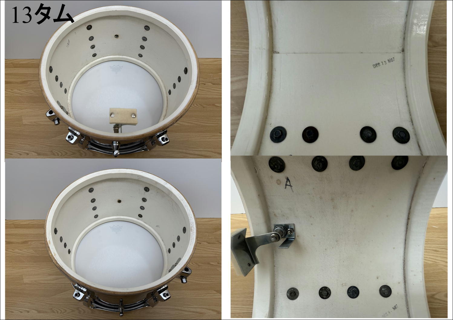 セット全体としてはシェルのレインフォースメント接着部に何点か隙間があったり、パーツに細かいキズやサビがあったりと生産年代に相応しい使用感や汚れがございますが、演奏に大きな支障はございません。