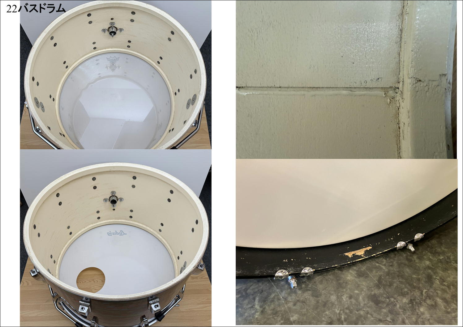 また、12"タムのシェルの継ぎめ部分に若干の浮きがございますが、早急に進行するようなものではございません。