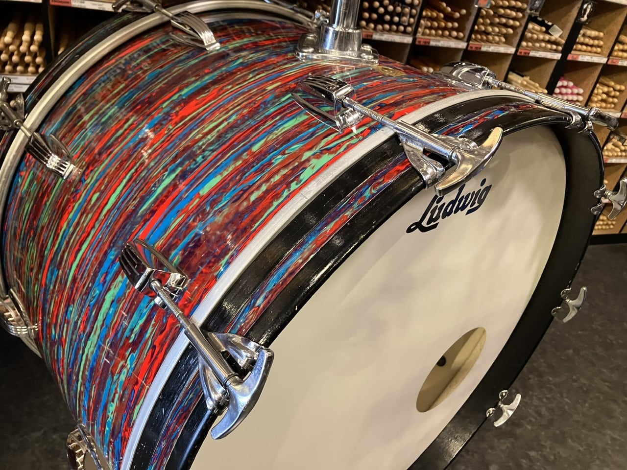 シェルの薄いこの時代のLUDWIGのセットならではのマイルドな中低音域の鳴りに優れたサウンドは素晴らしく、存在感抜群のルックスは雰囲気抜群でステージ映えも最高です!