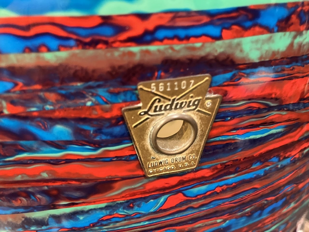 ヴィンテージ ドラムファンに高い人気を誇る60年代製LUDWIGドラムセットの大変貴重なPsychedelicRed(サイケディック レッド)カラーの逸品がハードケース付きで入荷しました。