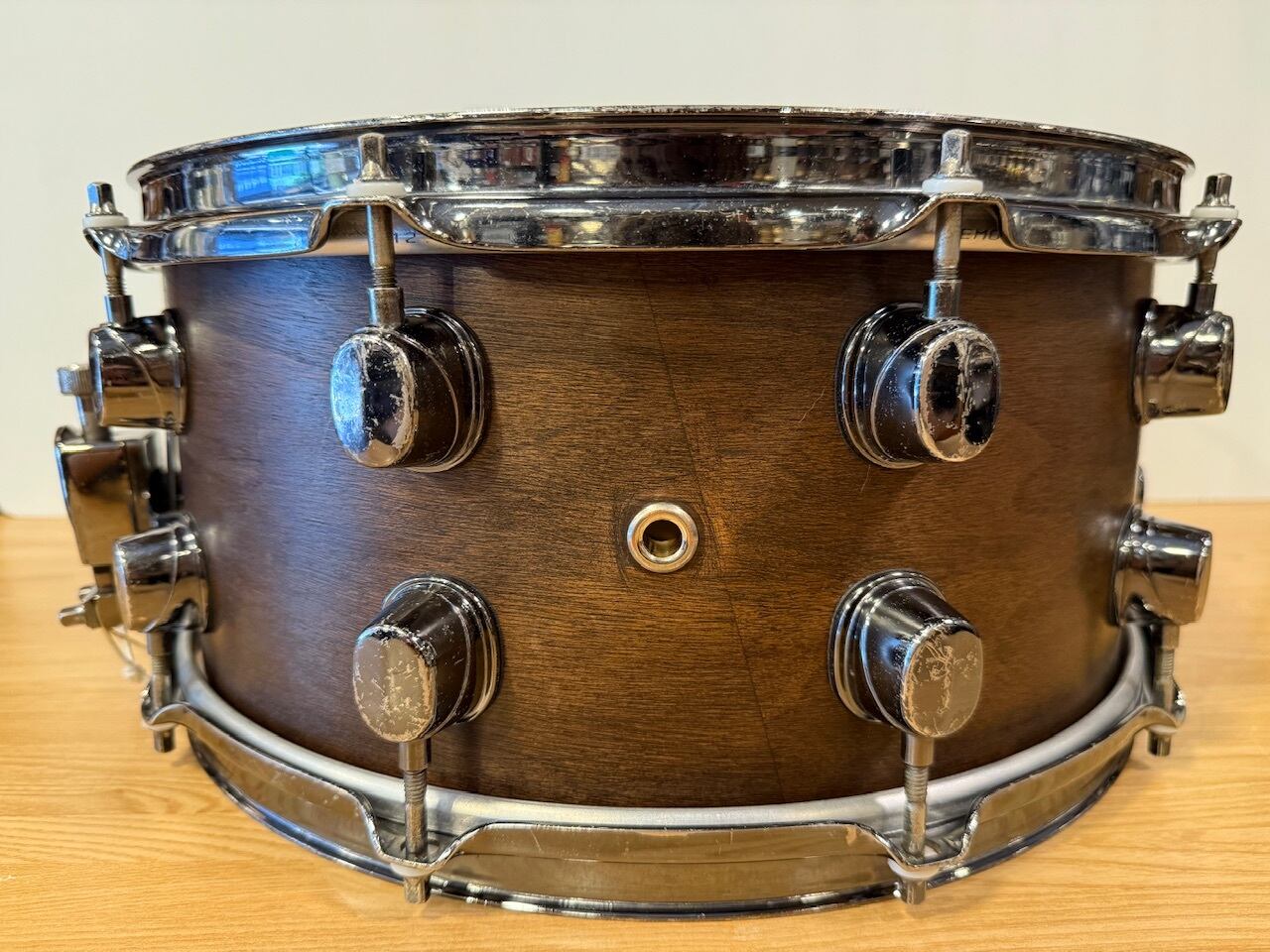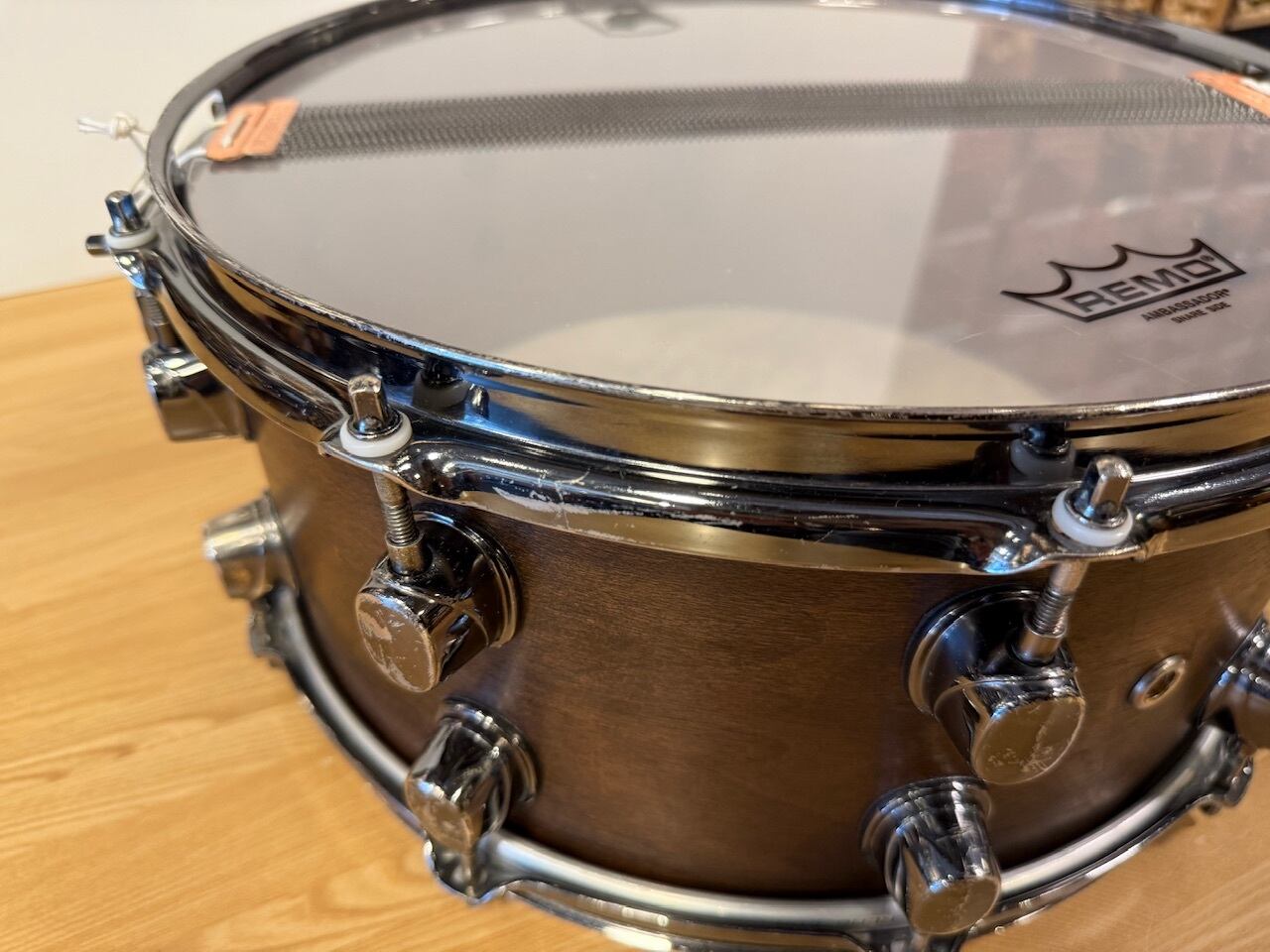 14インチのサイズと、6.5インチの深さを持つこのスネアは、ウォールナット材を使用した温かみのあるサウンドが特徴です。中低域の豊かな響きを持ち、ジャンルを問わず活躍する一台です。