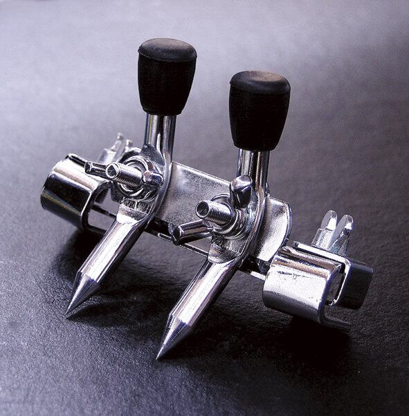 バスドラムのフロント側のウッドフープにとりつけ、演奏中にバスドラムが前進するのを防いでくれる定番アクセサリー。