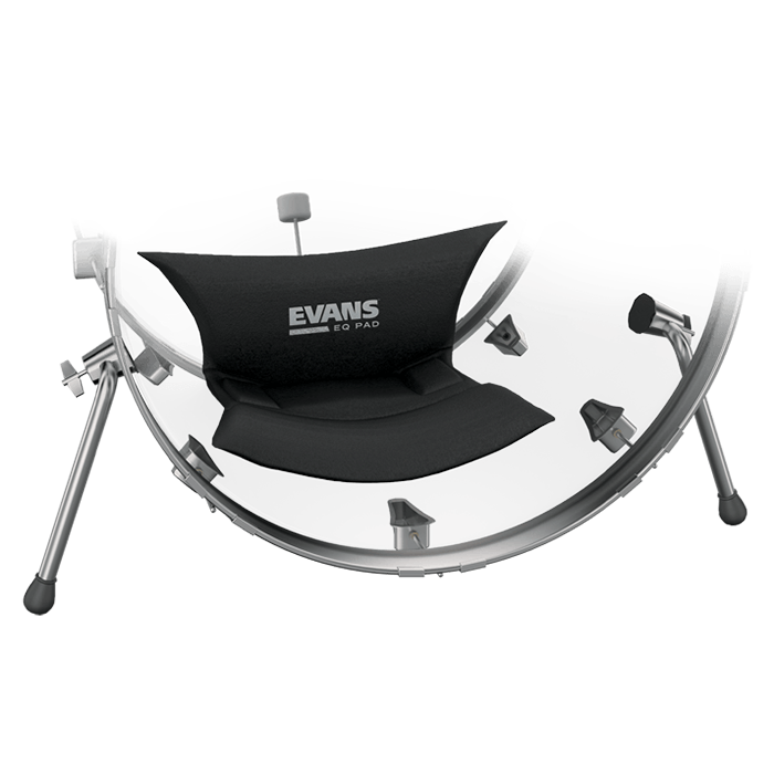 EQパッドは高性能なバスドラム用ダンパーパッドで、バスドラムのシェルにマジックテープで取り付け、通常はパッドがヘッドに当たった状態になっていますが、常にミュートした状態ではなく、バスドラムを叩いた時だけパットがヘッドから離れる為、アタック音や音量感を損なうことなくミュートが出来ます。
