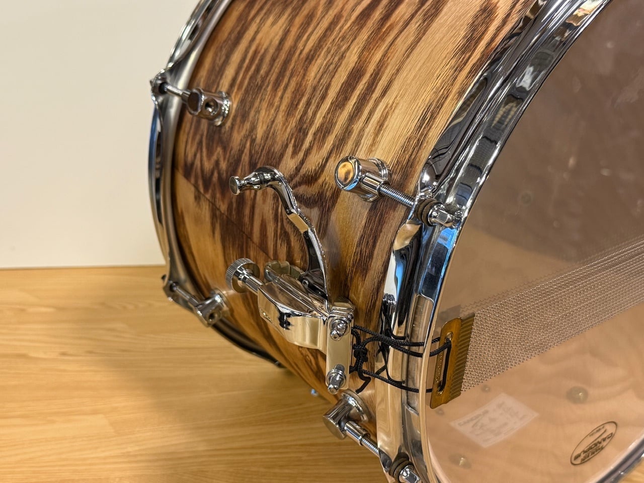 14”×10”という尋常じゃない深さが、ローピッチ用サイドスネアにバッチリな超個性派の一台となっております。