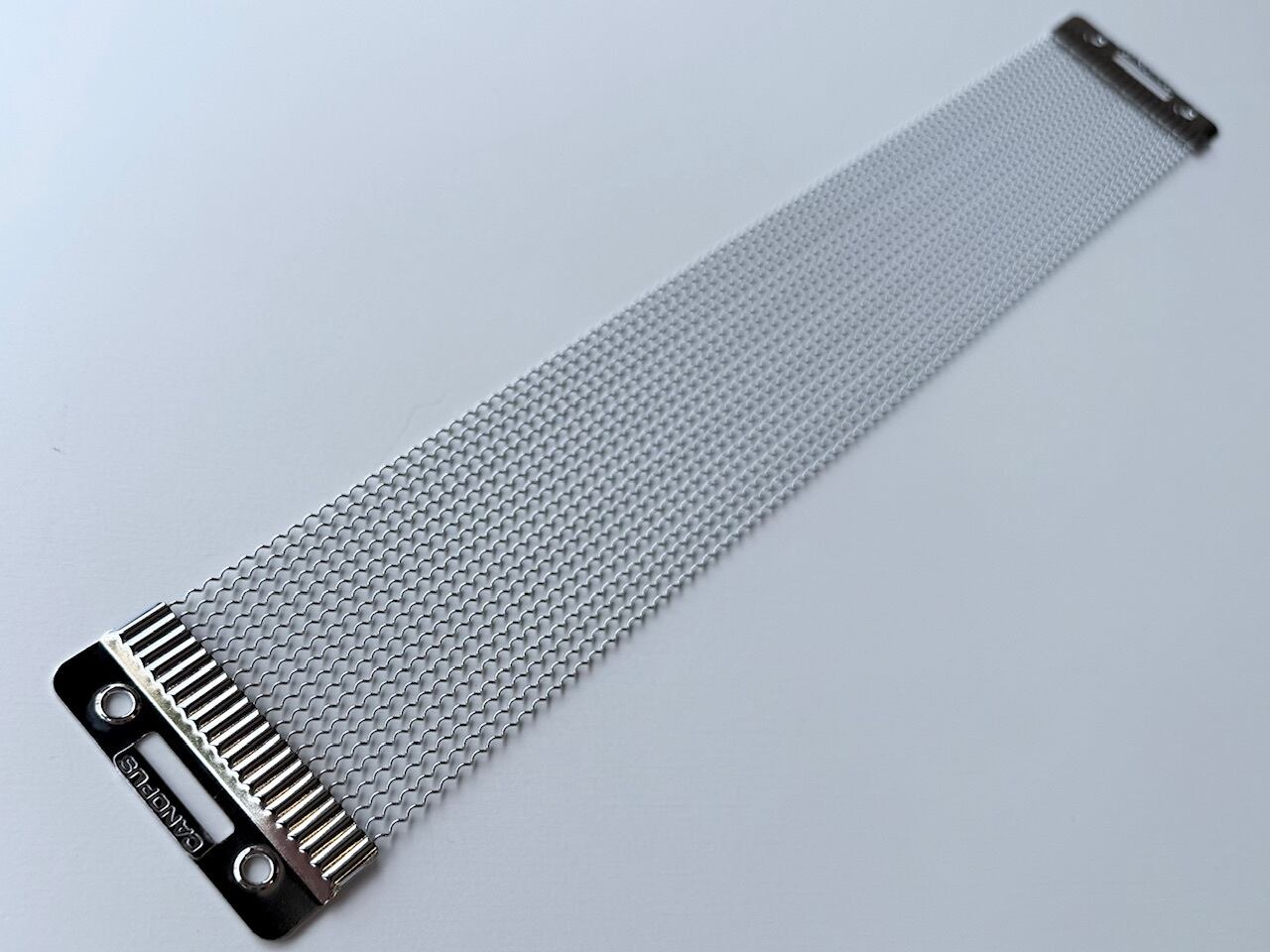 カノウプス・ヴィンテージ・スネア・ワイヤーは、ヴィンテージ・スリンガーランドのスネア・ワイヤーを正確に成分分析し、同一素材を採用。量産が非常に難しい線径0.5mm、線外径1.35mm、ピッチ3.4mmのオリジナル形状を忠実に再現しました。