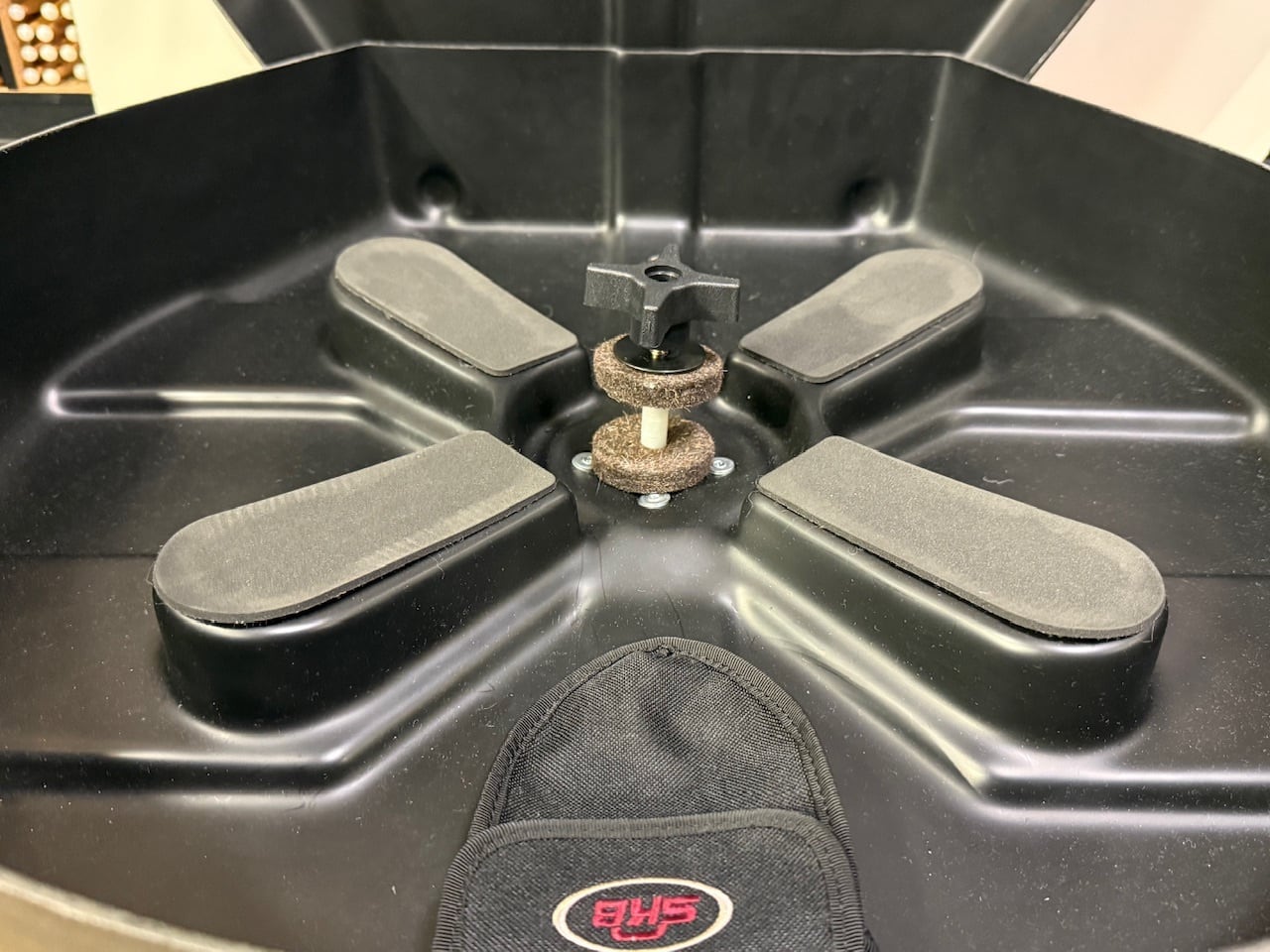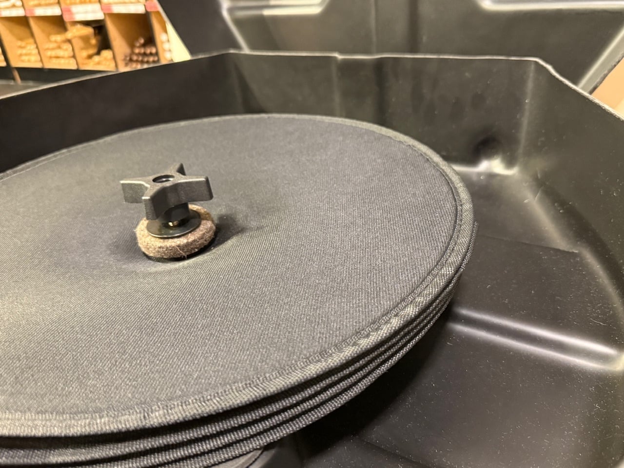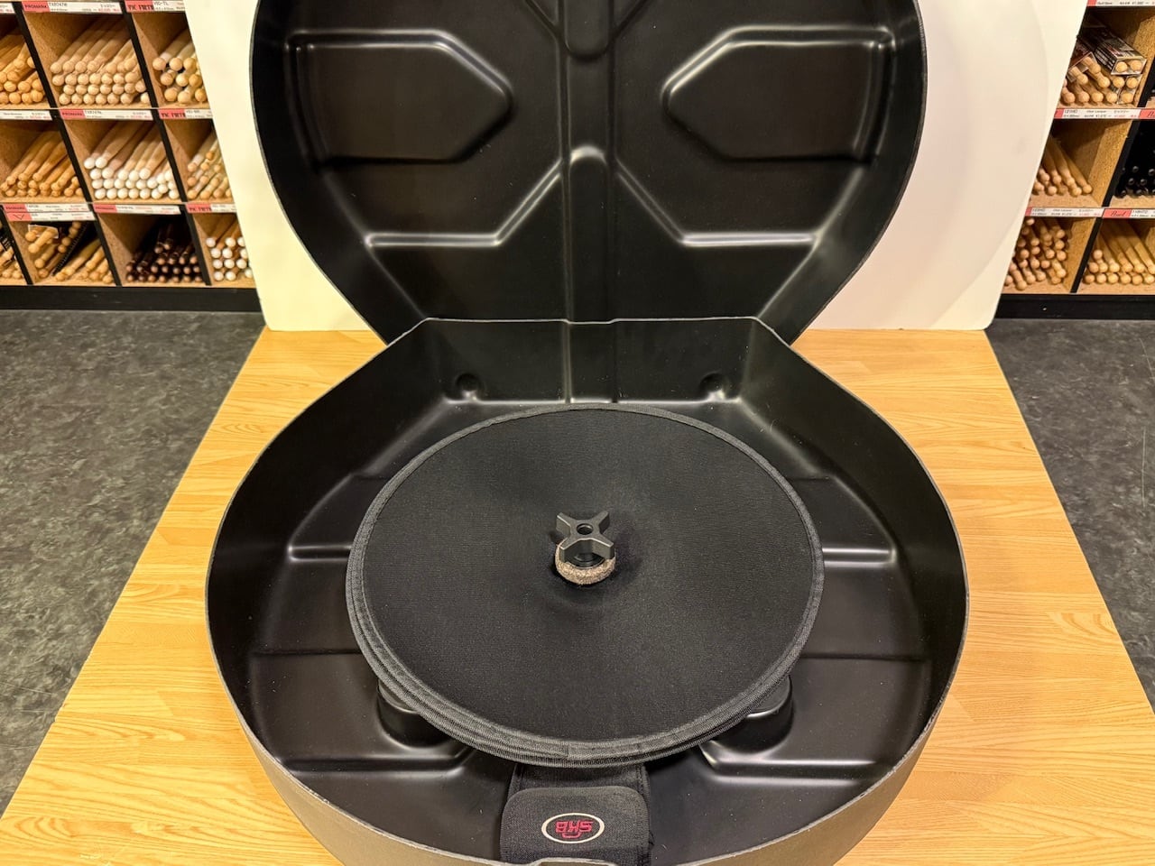 7枚以上のシンバルが収められ、センターポストとパッドでシンバルエッジにプレッシャーをかけません。