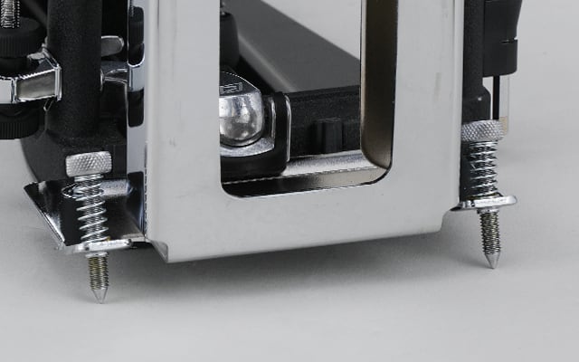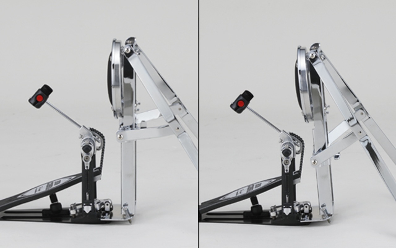 幅広&ガッチリとしたレッグ部分はかなり丈夫な造りで、ツインペダルでの高速連打でも安心の安定感を誇ります。