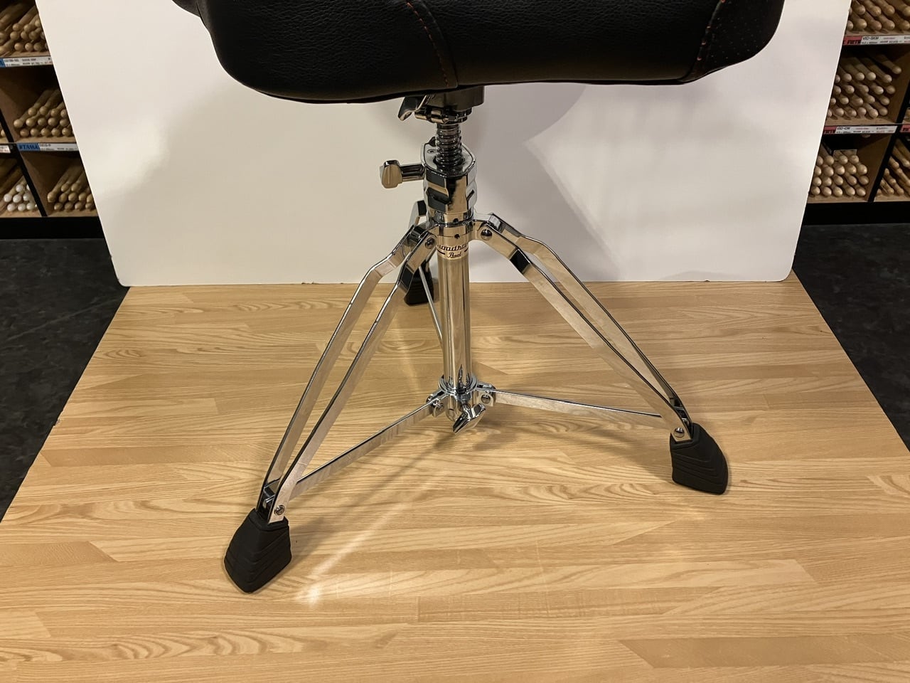 安定感抜群のサドル型シートに、背もたれが装着されたPearl ドラムスローンの高級モデル[D-3500BR]の美品USEDが入荷。