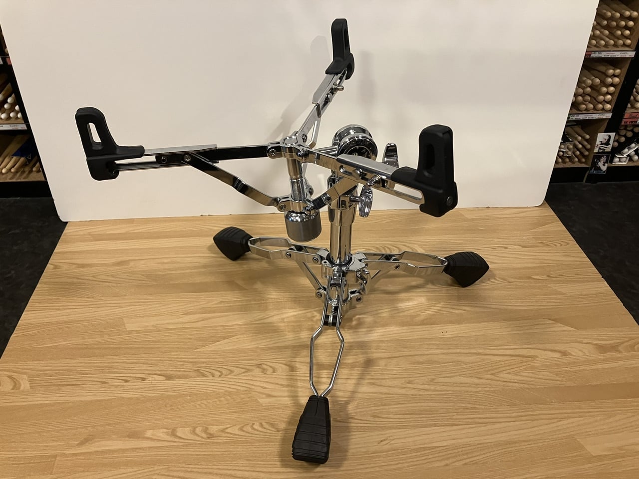口径10"~16"までのスネアドラムに対応し、さらなるローポジション設定を実現した、プロフェッショナル仕様のスタンド。