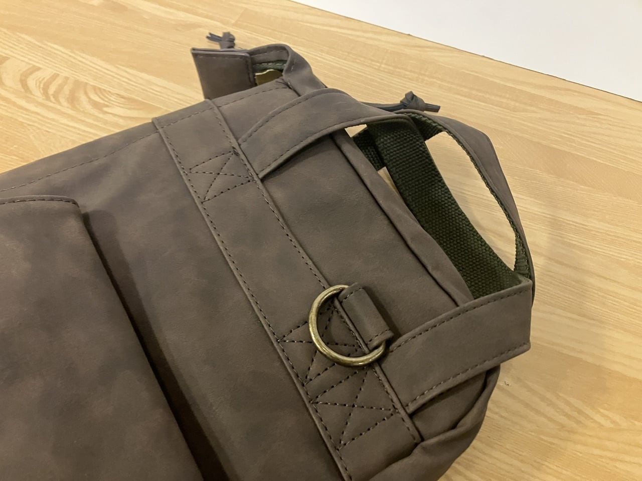 長さ調整可能なフロアタムセッティング用ストラップ&金属製フック、また肩掛けはバッグの前後ろでセットできるようなポジションとなっており、運搬時に体へフィットするデザインとなっています。