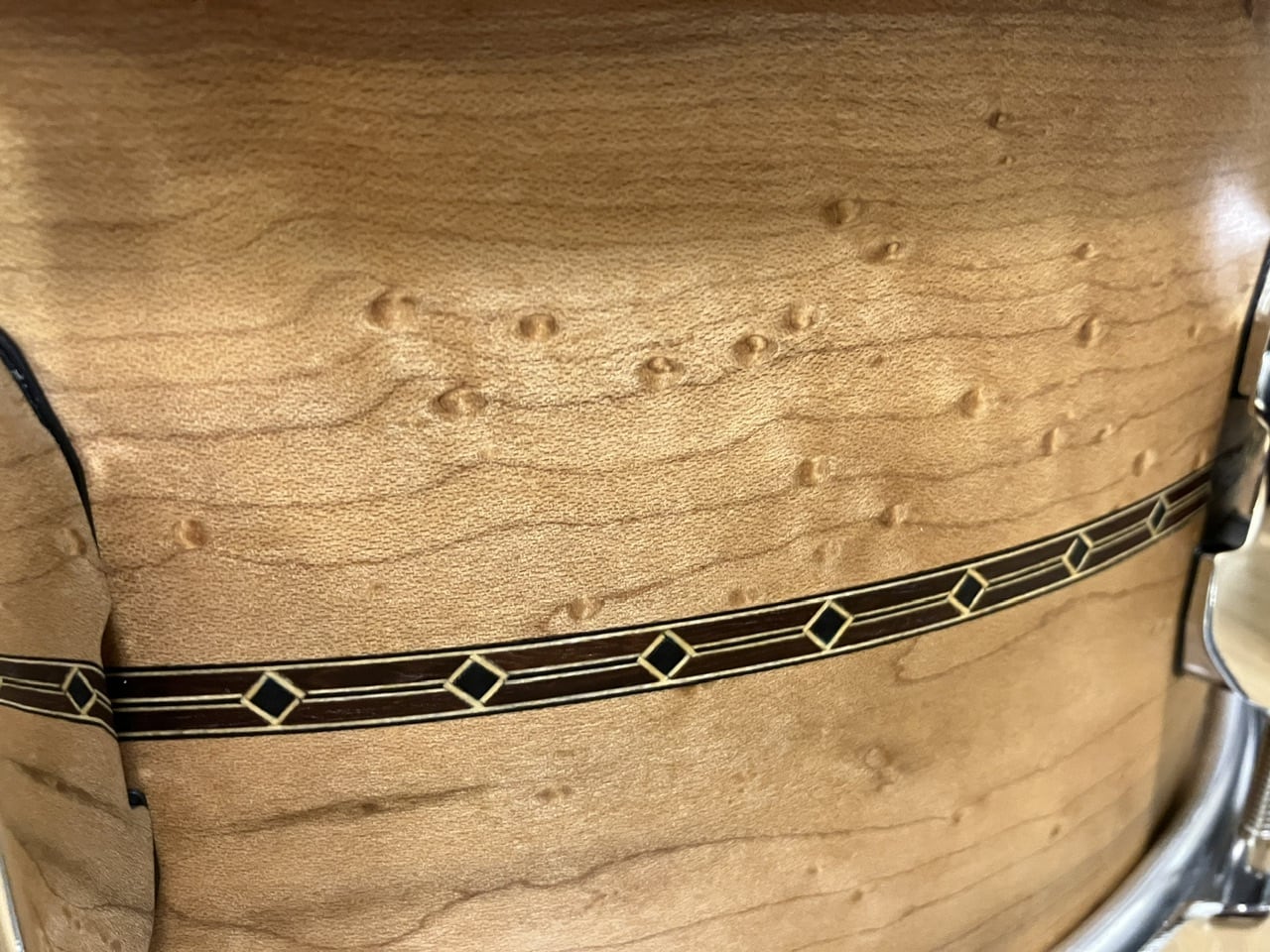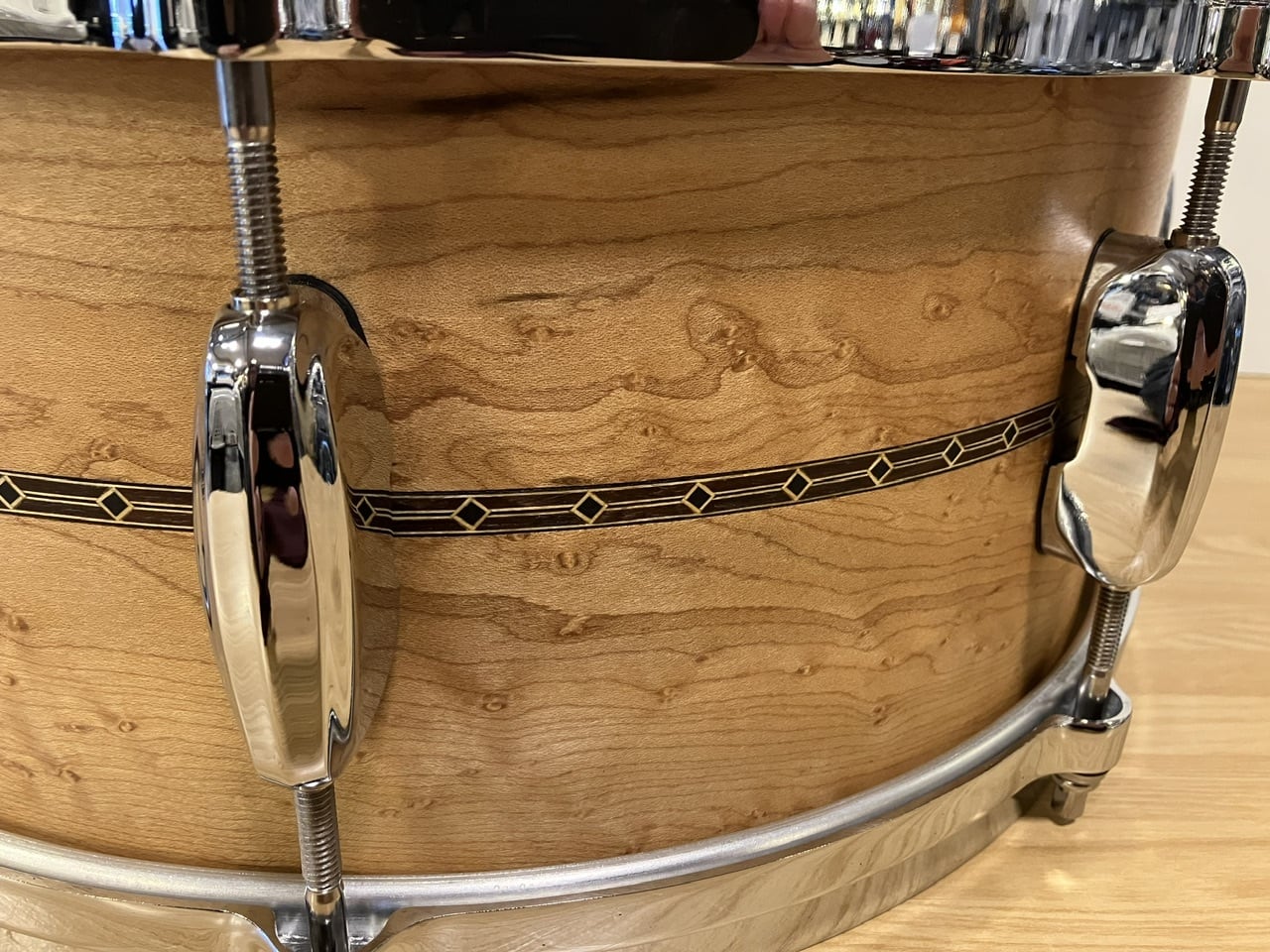 “TLBM146S-OBE”は、希少なバーズアイメイプルの単板材を使用した、日本市場10台限定のスネアドラムです。