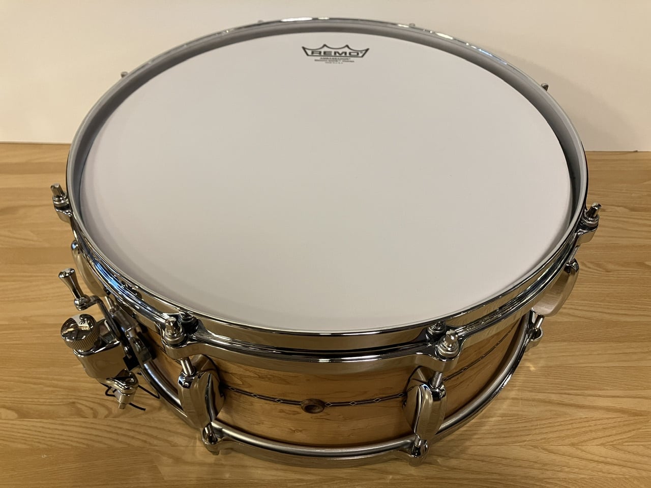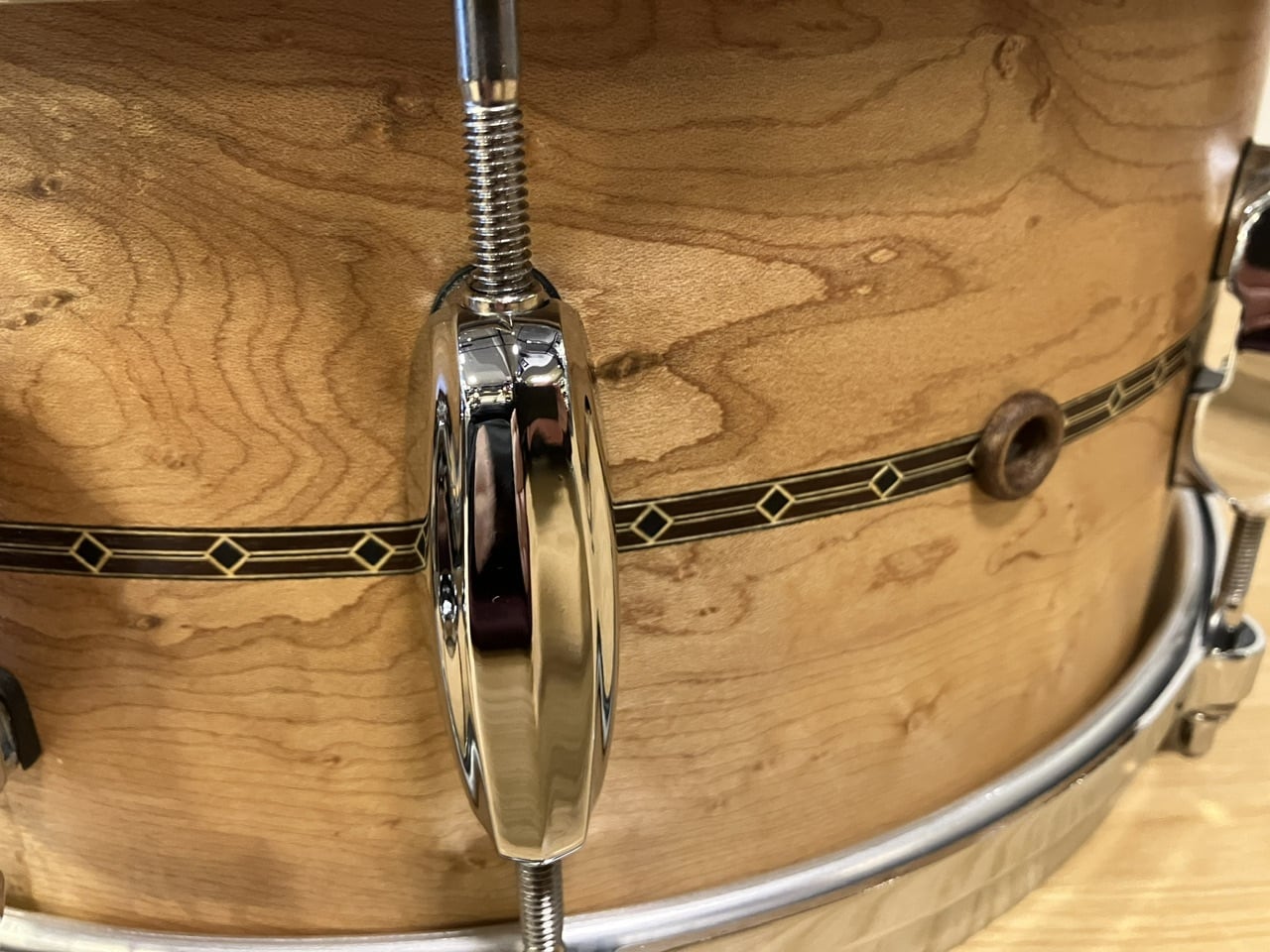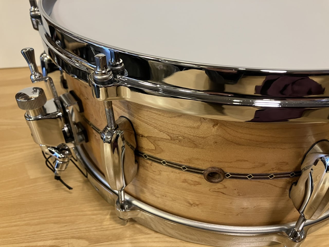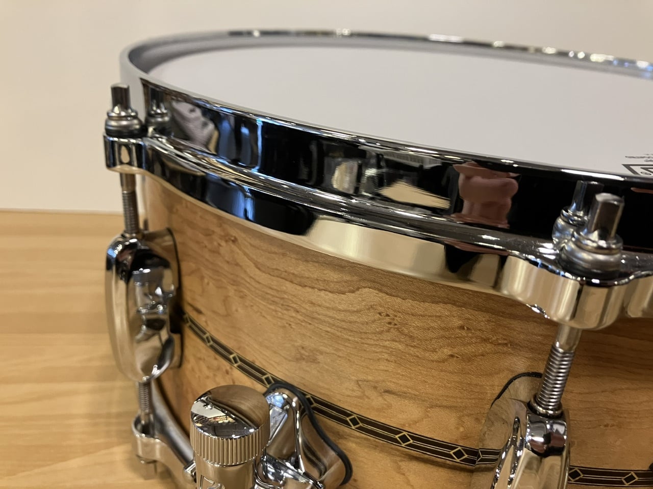 もちろんサウンドも極上で、主に寒冷地に生息するバーズアイメイプルならではの、通常のメイプルより粘りを持った明確なアタック、抜群のレスポンス、色気にふれた明るいトーンと非常にバランスの取れた優秀なスネアドラムに仕上がっています。