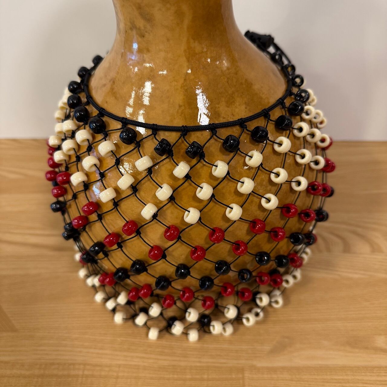 赤・黒・ベージュのビーズがつくり出すグラデーションは、まるで消えかけの炎がまだ奥で息づいているような、深いエネルギーを感じさせます。