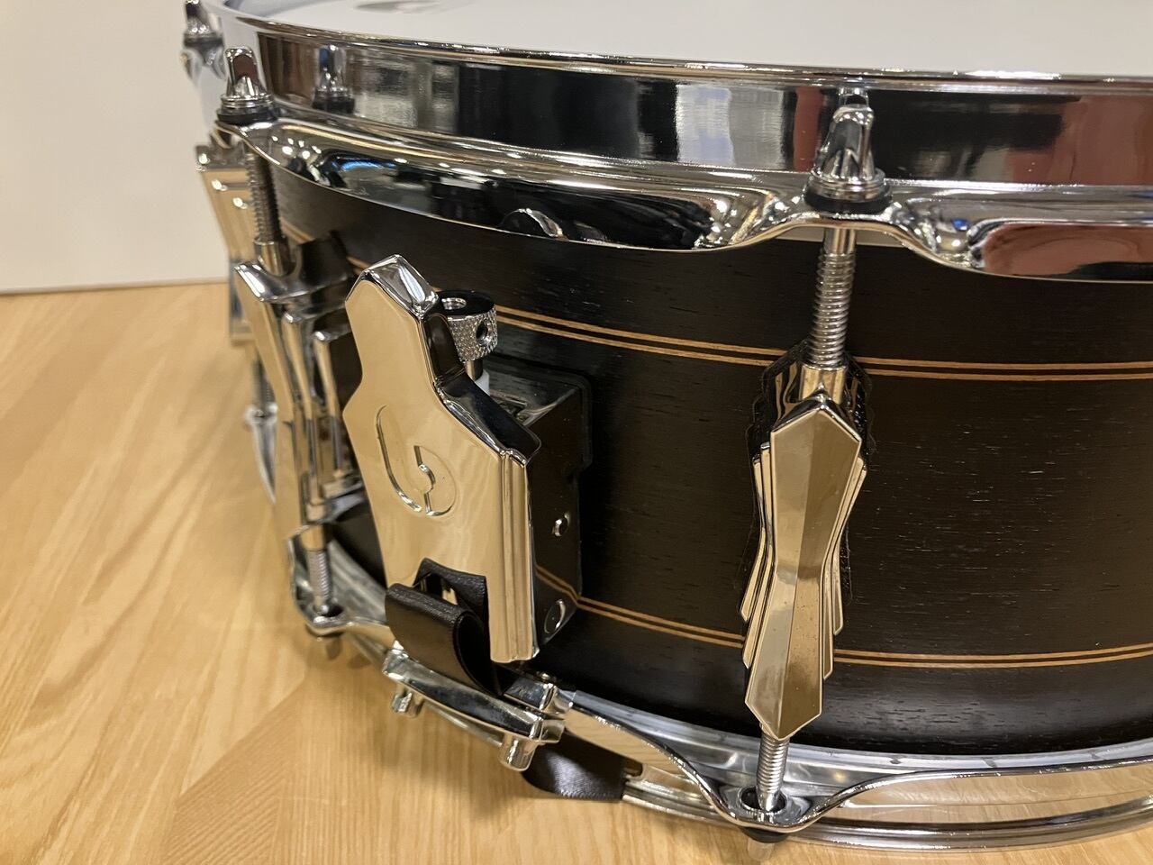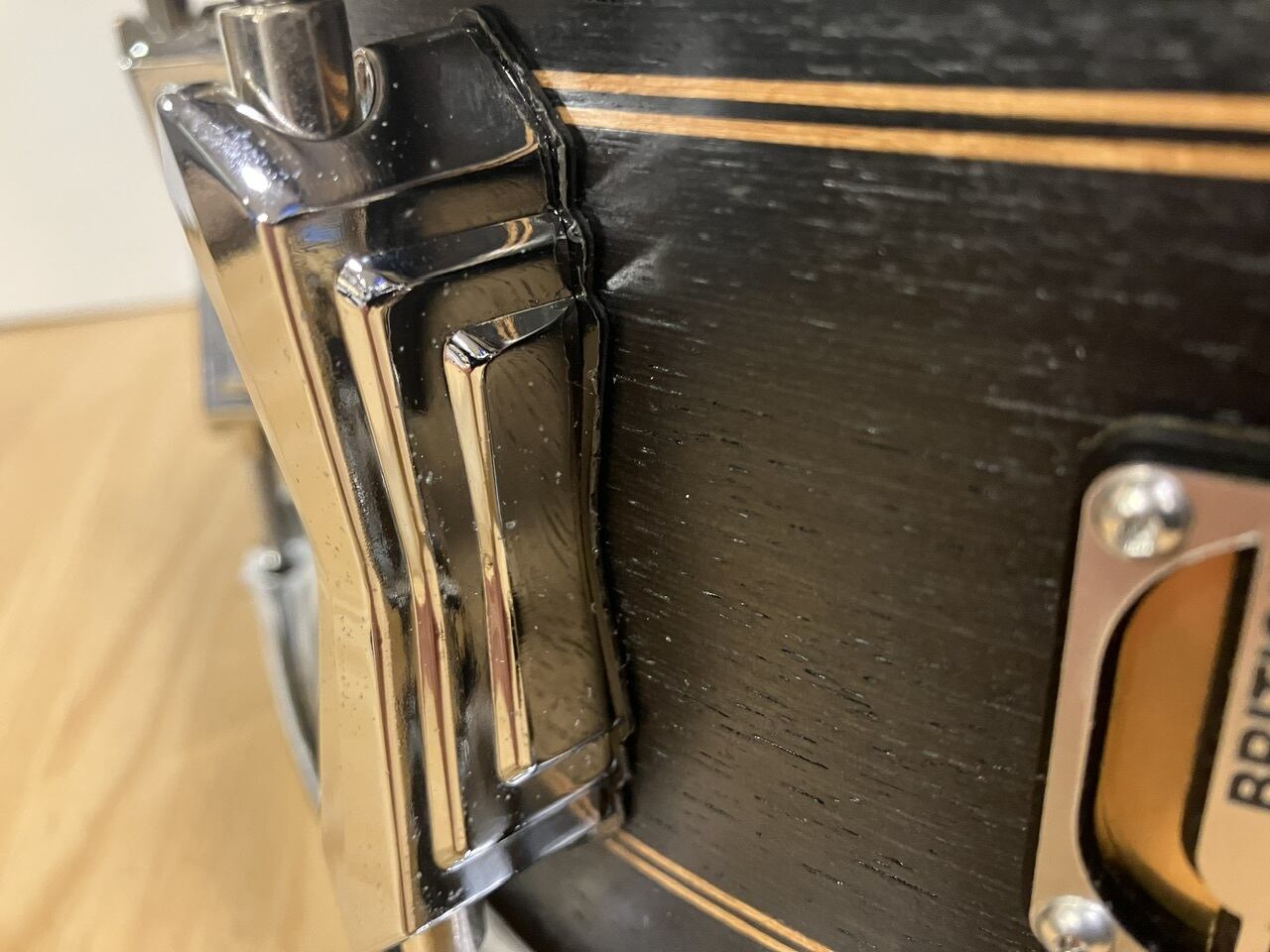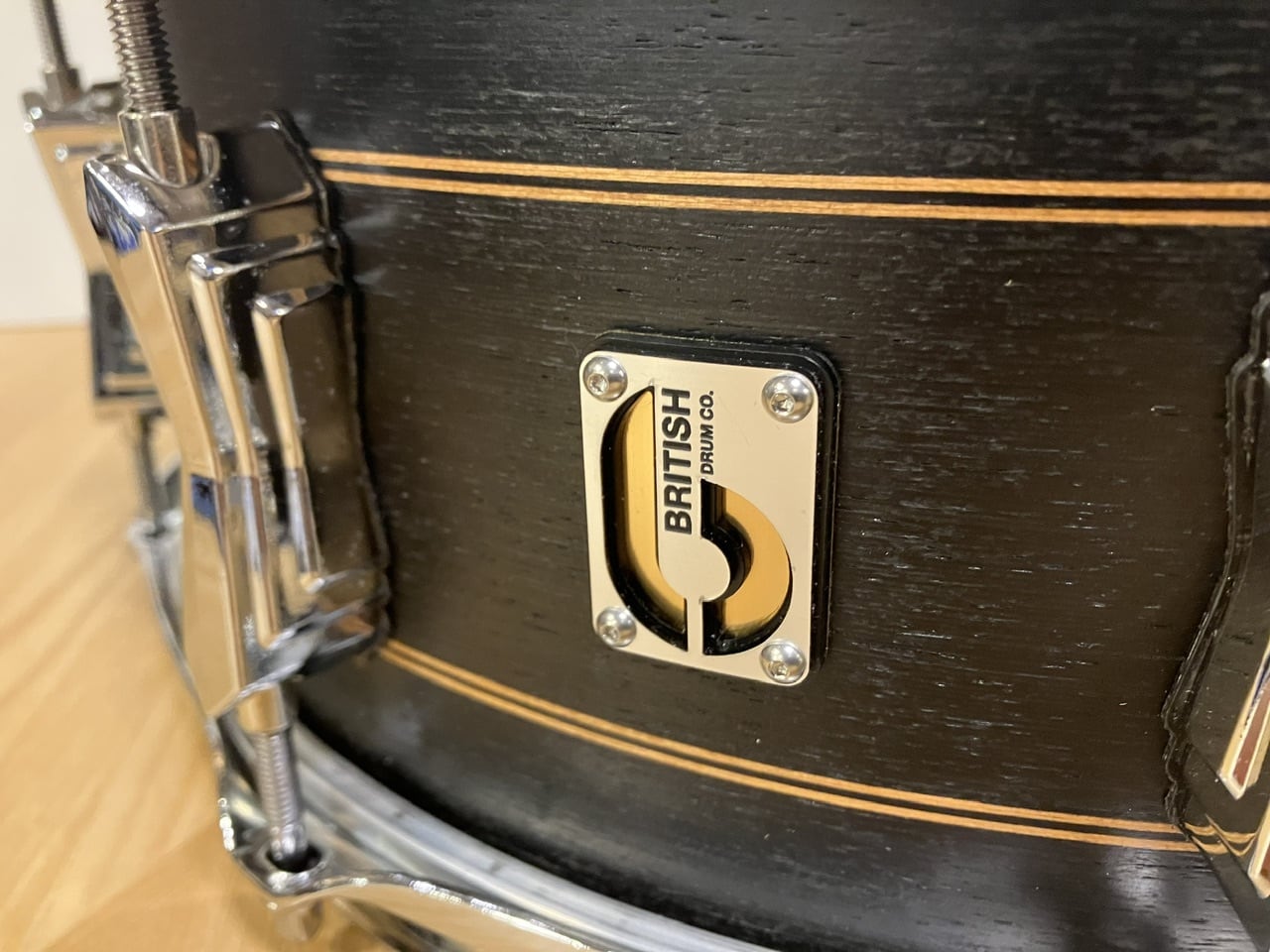 British Drum社のネームバッジは、必要最小限でやや控えめなアピールをする形でシンプルなレーザー切削されたバッジとして、美しいユーカリのシェルに取り付けられています。