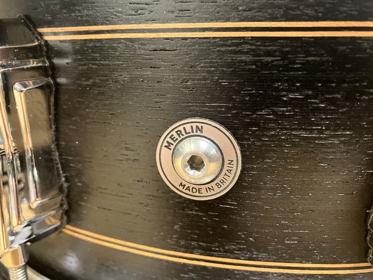 垂直と水平方向に交互に重ねられた20plyのハンドメイドシェルですが、メイプルは暖かみのある音色と早いレスポンス、バーチは引き締まって面で鳴る太い音色、それらの両方の特徴を詰め込んだのがMerlinです。シェルは、ブラックチューリップの単板を使って正確にカットされ、メイプルで仕上げたピンストライプを2本加えて仕上げています。Merlinは14” x 5.5” と14” x 6.5” のオプションがあり、各々特徴的なサウンドを備えています。