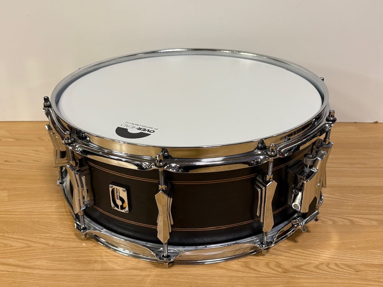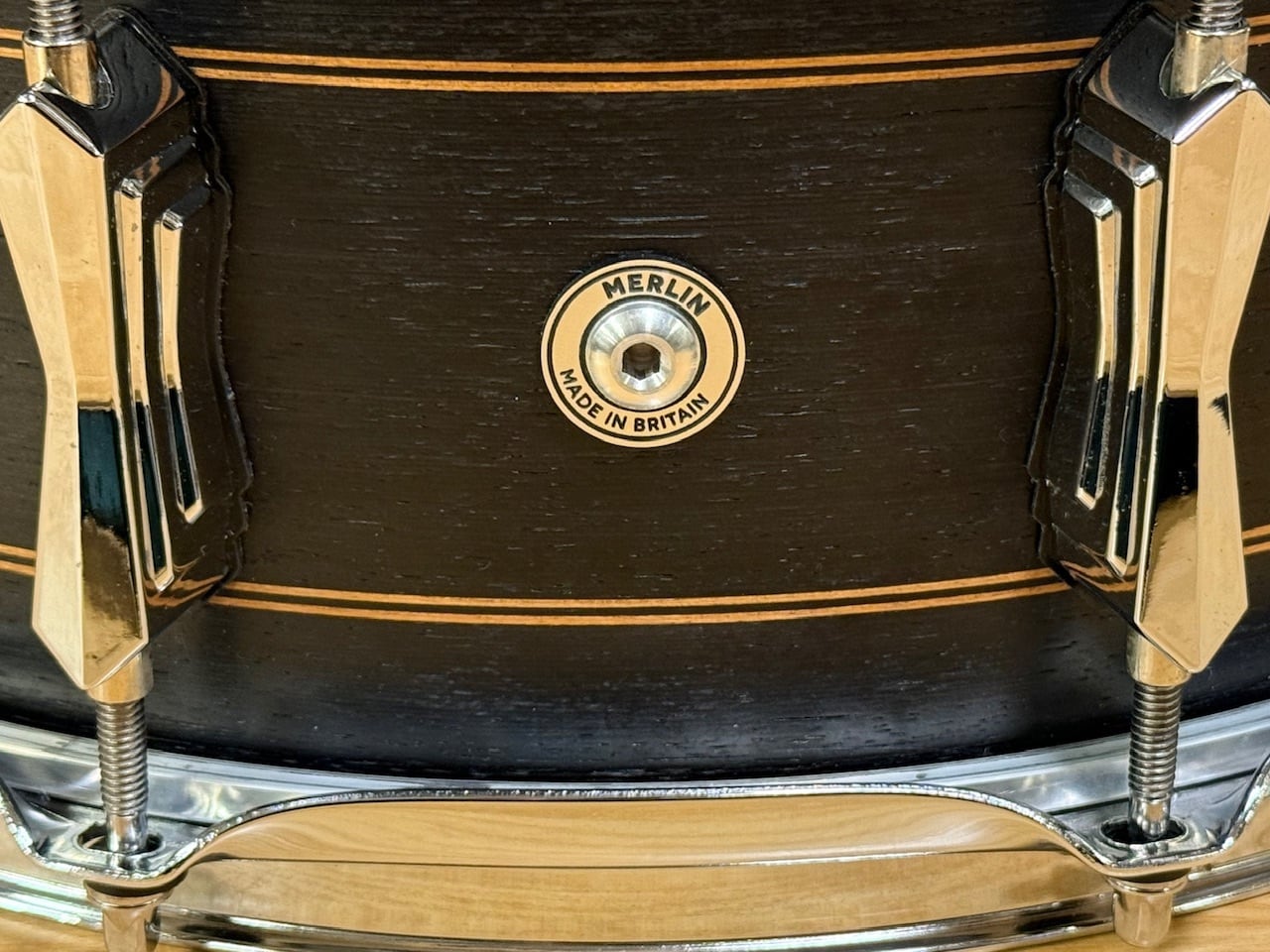 垂直と水平方向に交互に重ねられた20plyのハンドメイドシェルですが、メイプルは暖かみのある音色と早いレスポンス、バーチは引き締まって面で鳴る太い音色、それらの両方の特徴を詰め込んだのがMerlinです。シェルは、ブラックチューリップの単板を使って正確にカットされ、メイプルで仕上げたピンストライプを2本加えて仕上げています。Merlinは14” x 5.5” と14” x 6.5” のオプションがあり、各々特徴的なサウンドを備えています。