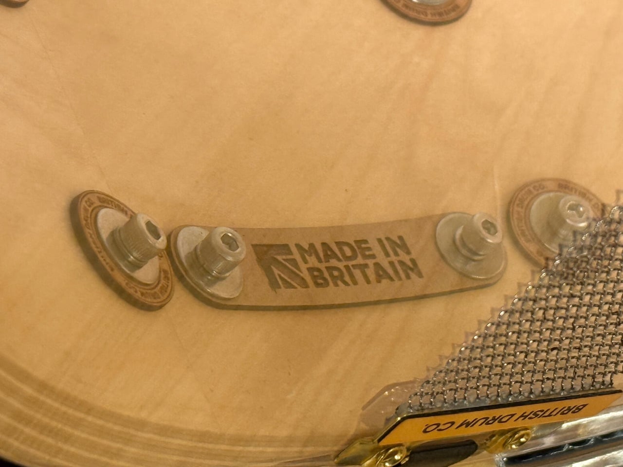 British Drumのドラムには、その名前を刻印し、英国製であることを表示する手作りのレーザー彫刻されたベントバッジが取り付けられています。。