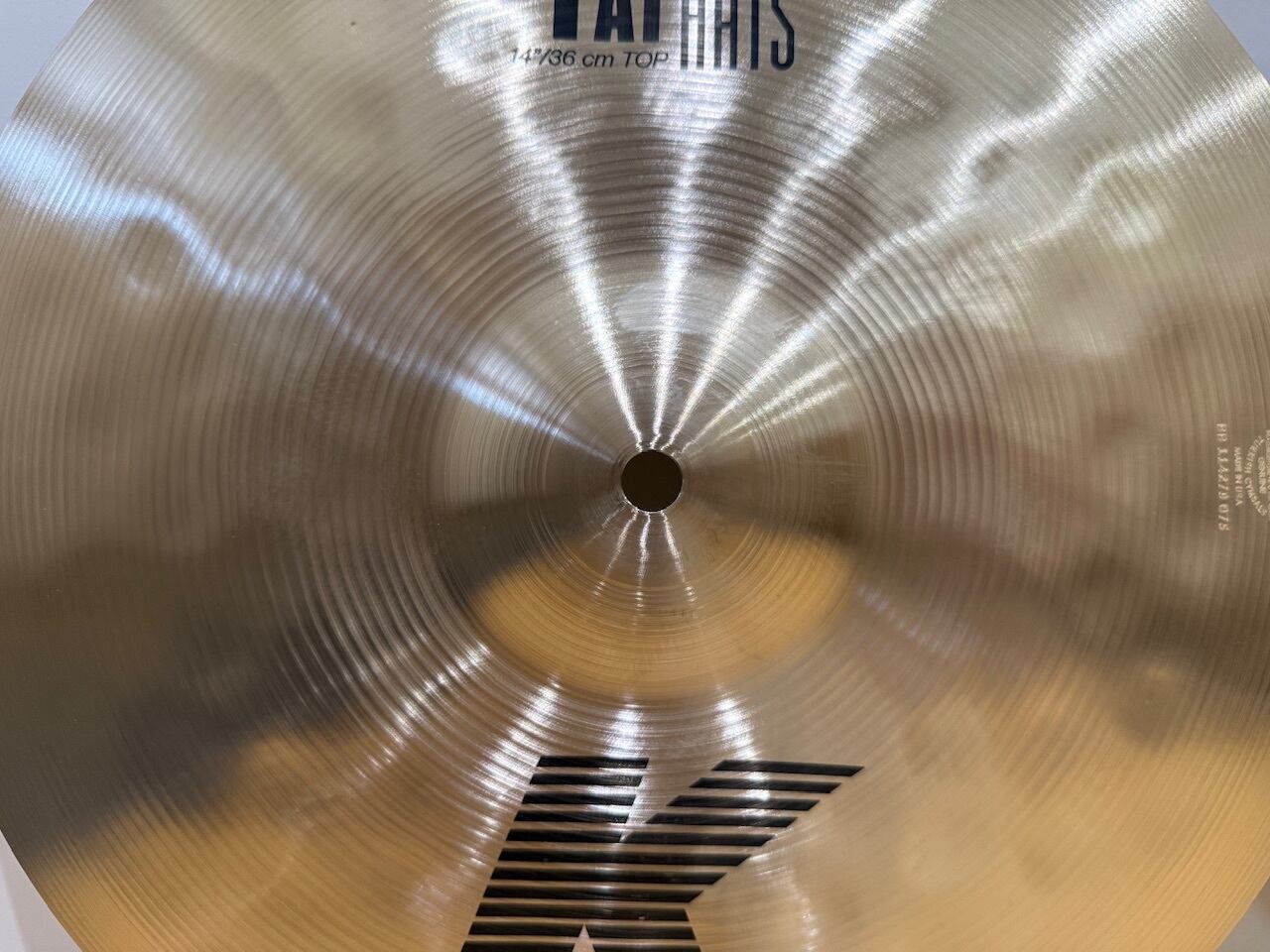 ダークで上品なKの響きに、煌びやかで力強いAのニュアンスを融合したサウンドコンセプトになっており、Aジル的な扱いやすい程よいウェイトと幅広のレイジングに、Kコンスタンチノープルのような深いハンマリングと、見た目も他のKのハットとハッキリ違いますね。