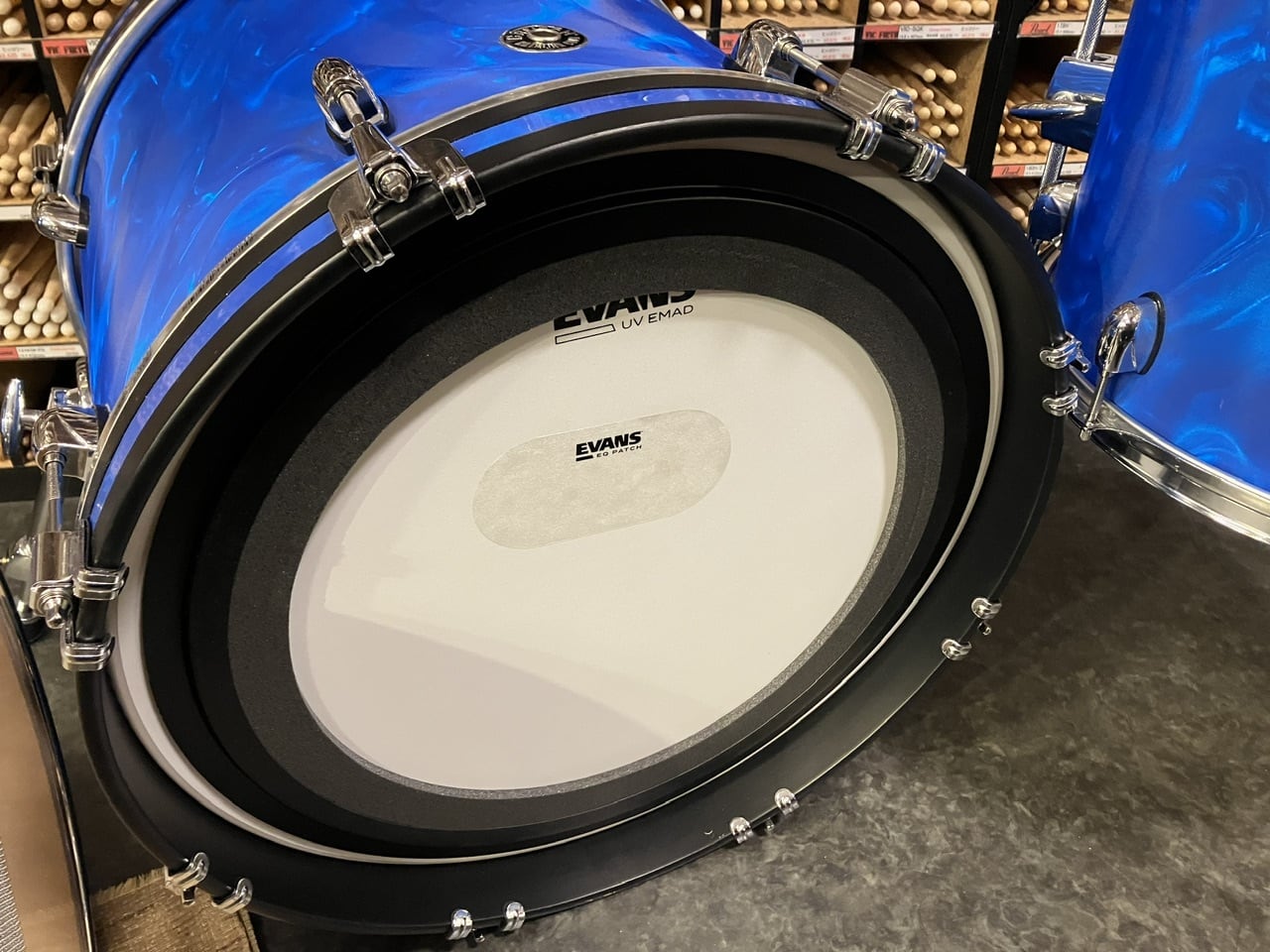バスドラム : [打面]EVANS EMAD コーテッド/ [フロント] EVANS EQ3レゾナント スムースホワイト (Gretschロゴ付)