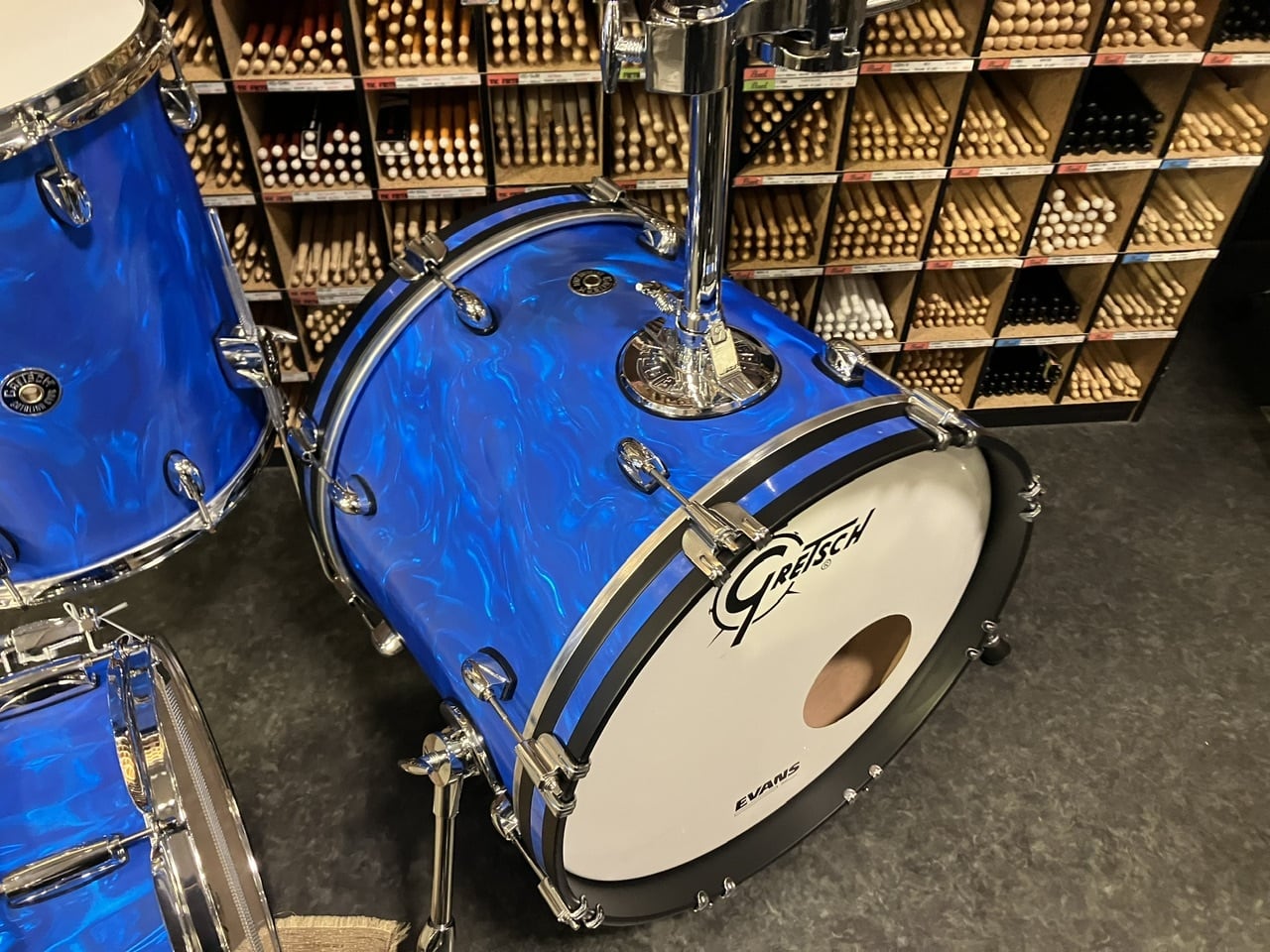 グレッチ好きの皆様にはたまらない18"バスドラムに12"タム 14"フロアをセットアップした伝統的なBOPキットの構成でスネアも付属しております。