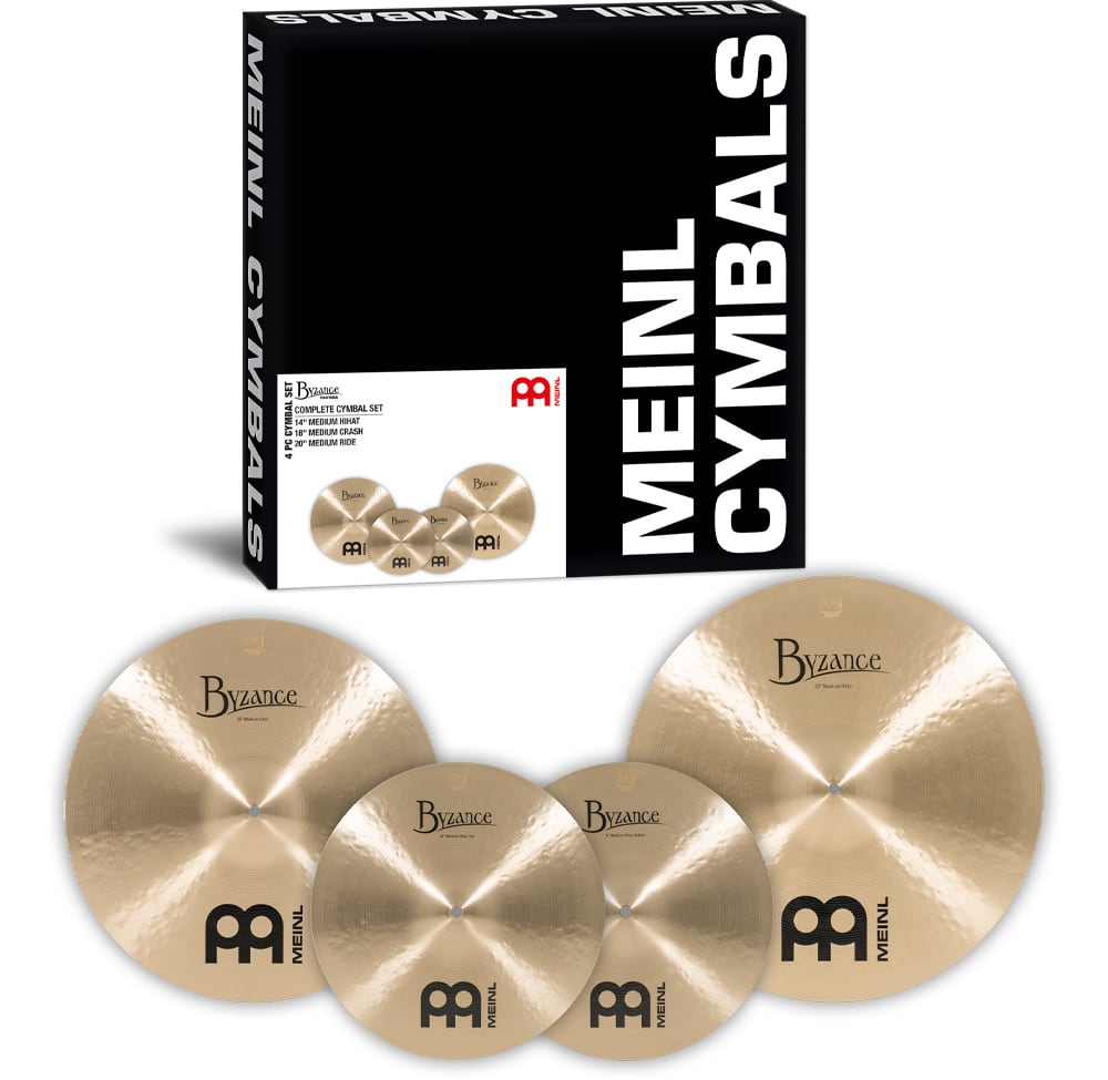 MEINLシンバルのプロモデルのスタンダード[Byzance Traditional]の18"ミディアムクラッシュ、14"ミディアムハイハット、20" ミディアムライドが一式入ったお得なセットです。