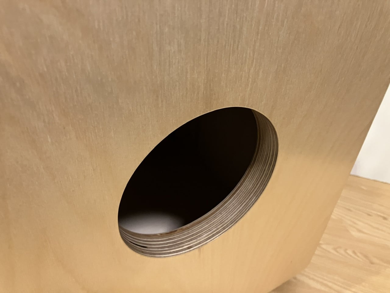 こちらのB32-310は奥行きは通常ですが、ワイドボディとバスレフ搭載のサウンドホールが特徴的で、力強く迫力のある低音になっています。