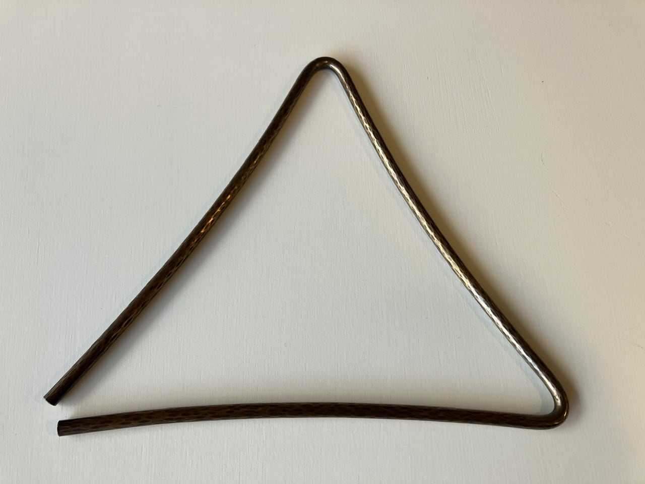 通常とは違う特殊な形状をしたトライアングルには手作業によるハンマリングが施されており、波動を生み出すと言われる程の深い倍音を生み出しています。