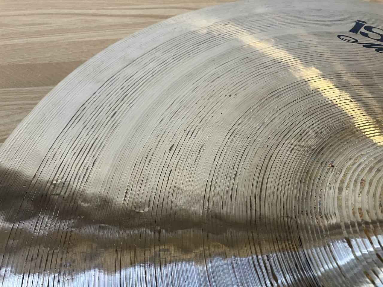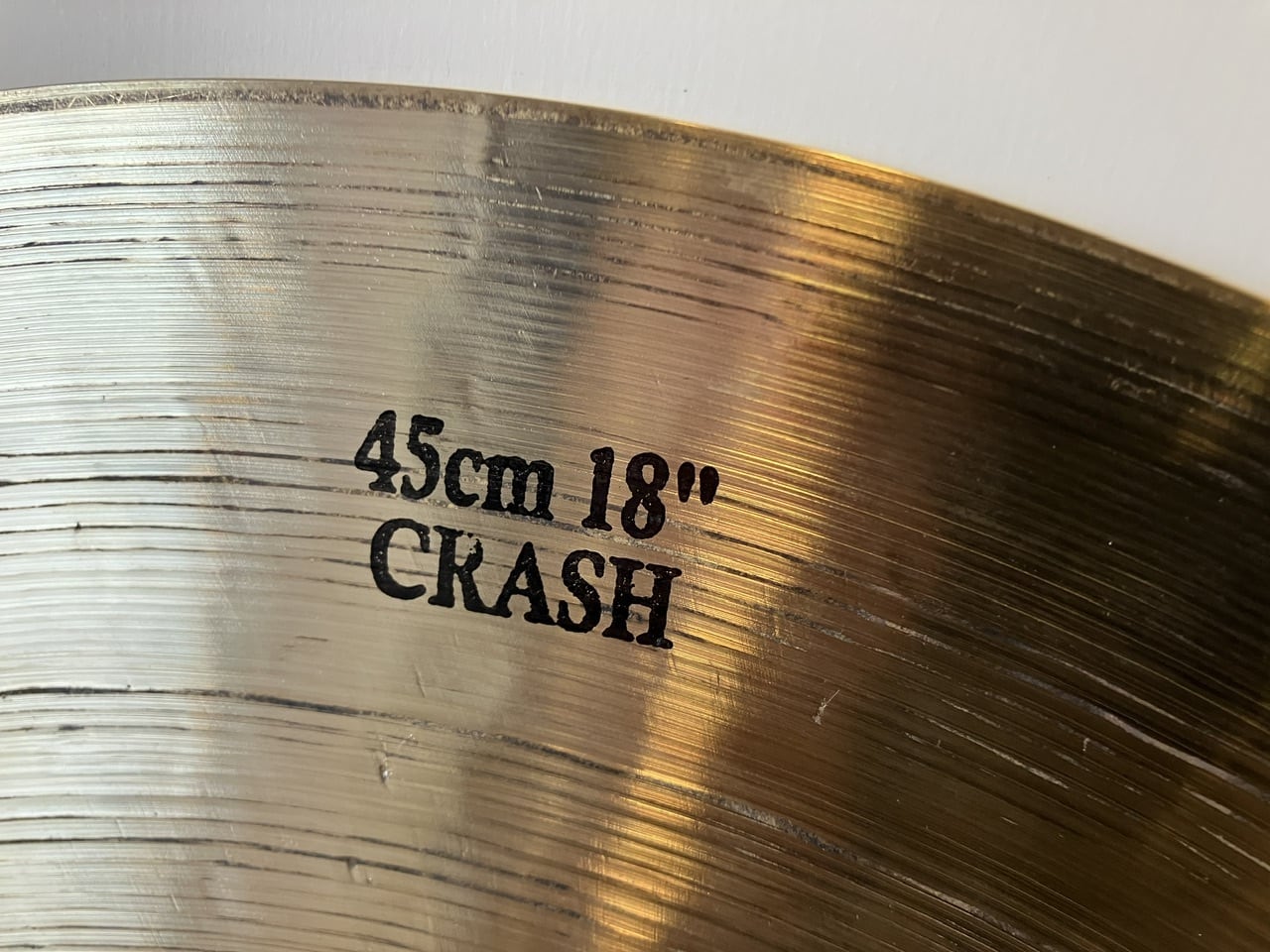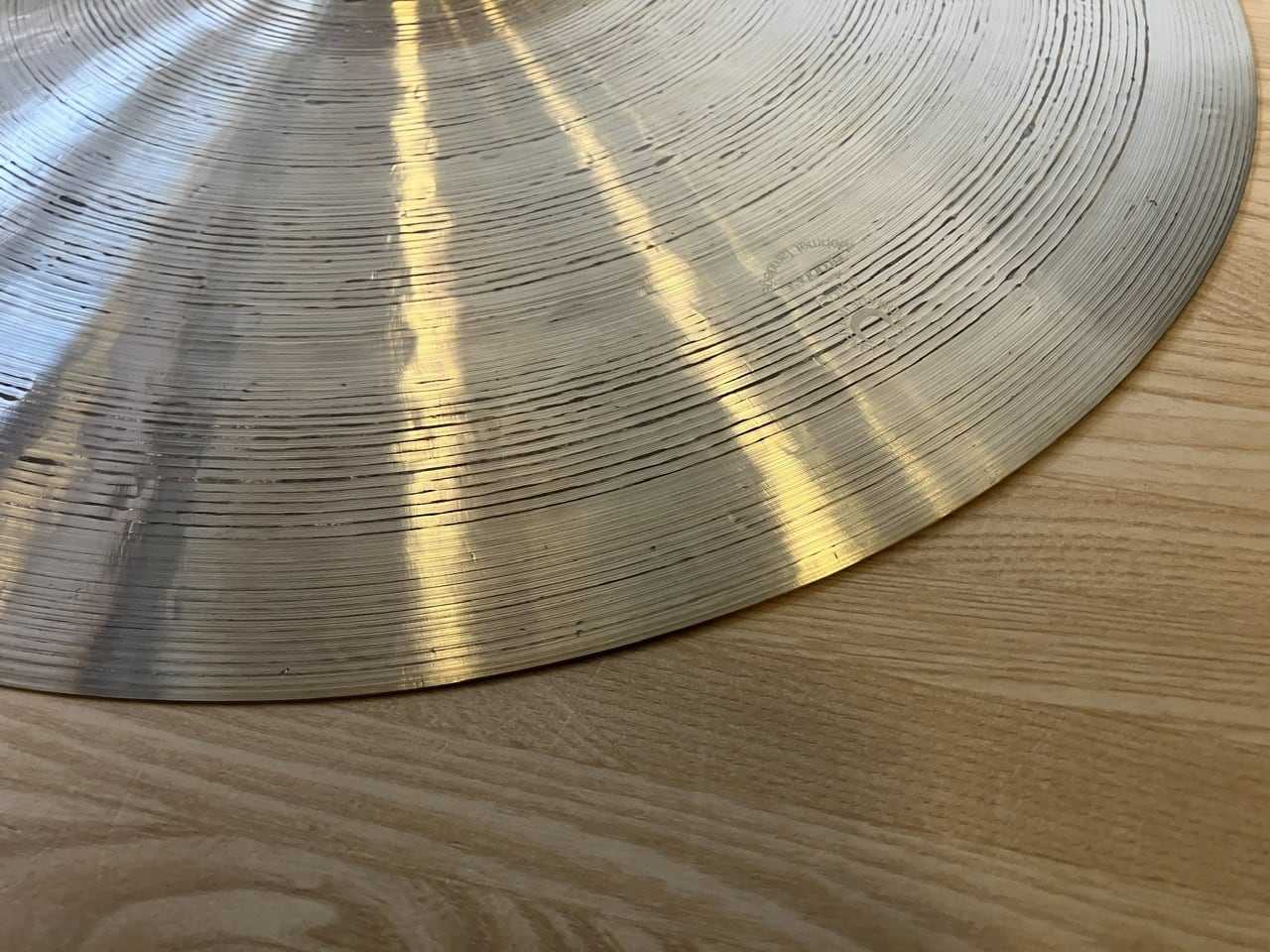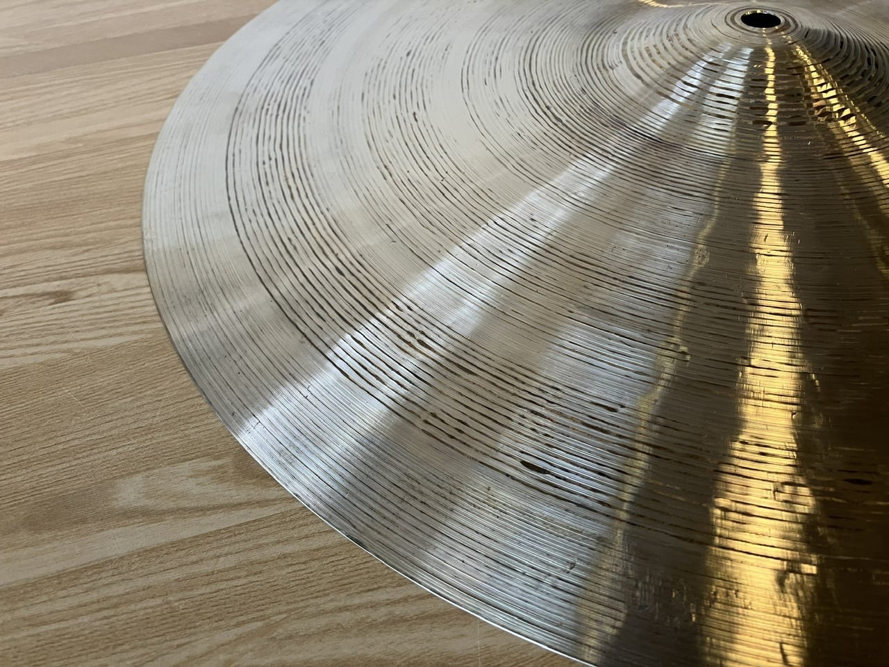 こちらはMEHMET Legend Classic Suspended crash 18"の製品開発の段階で製作された通常とは違う試作品ともいえるバージョンで、カップの部分にレイジングが施されていおり、ハンマリングもされているという特殊な設計になっています。