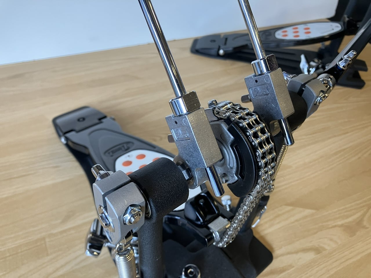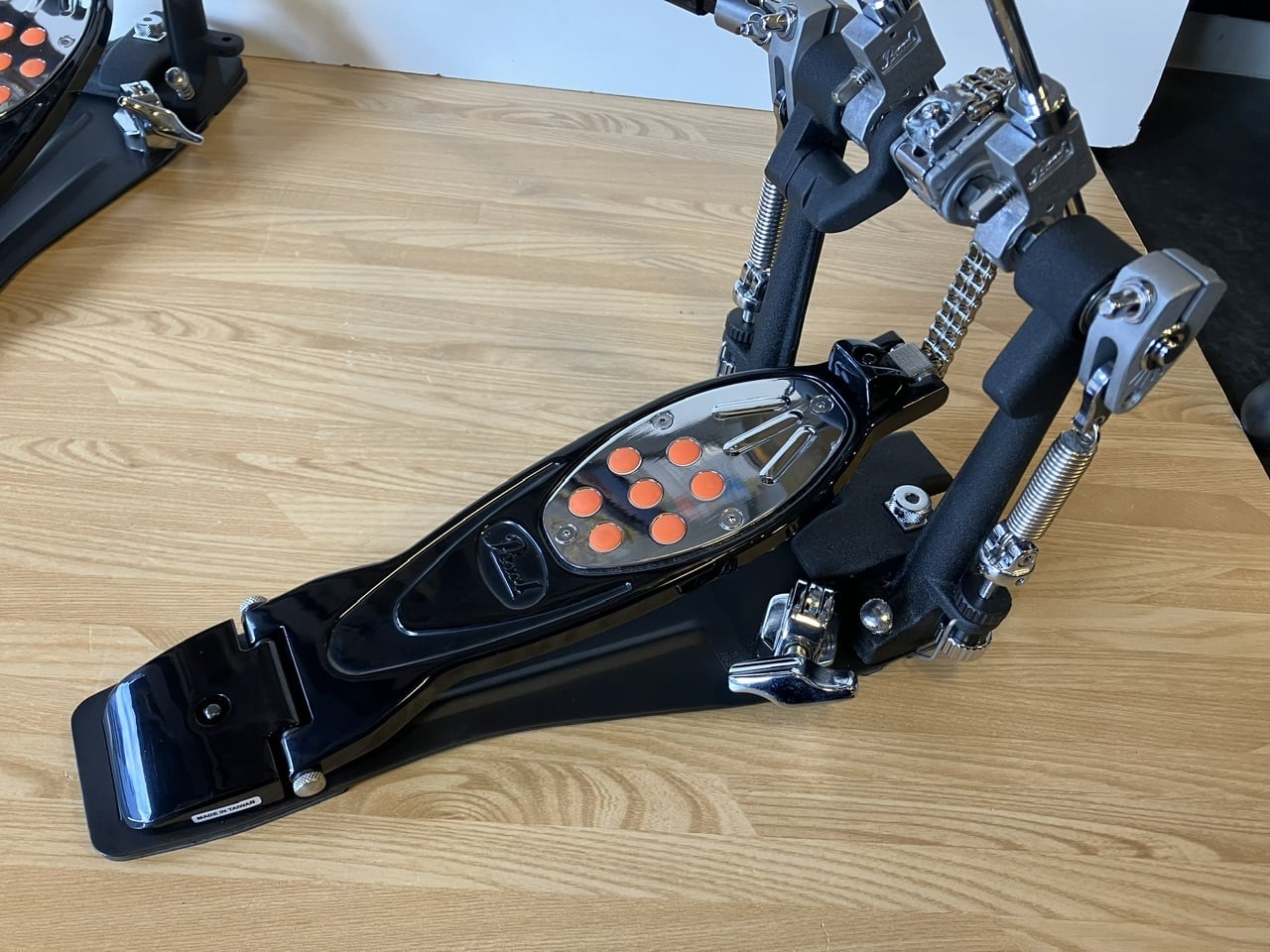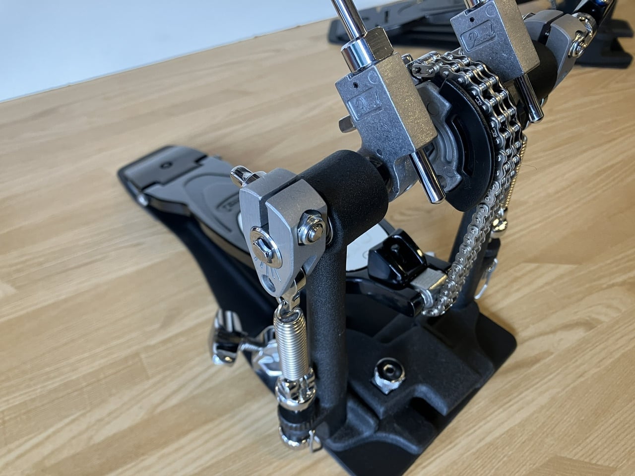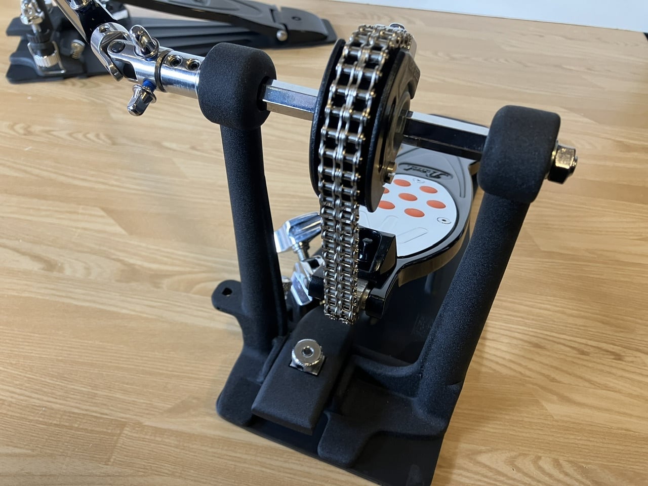 スタンダードなクセの無いダブルチェーンのアクションと、力強い出音、多彩な調節機能で、標準的プロモデルのペダルとして定番として時代を超えて愛される、エリミネーターの第2世代モデル [エリミネーター2]の超美品USEDツインペダルが入荷しました。
