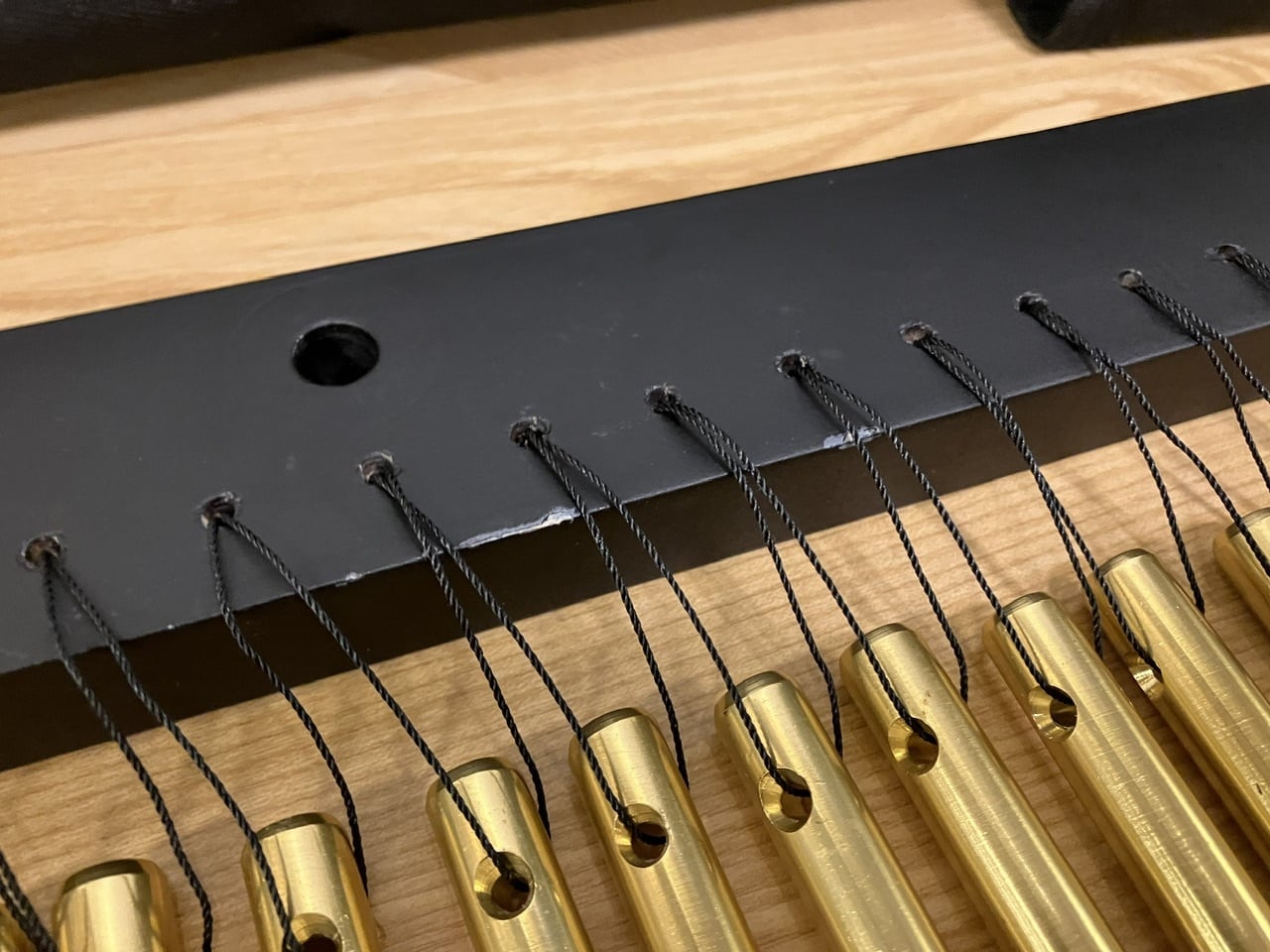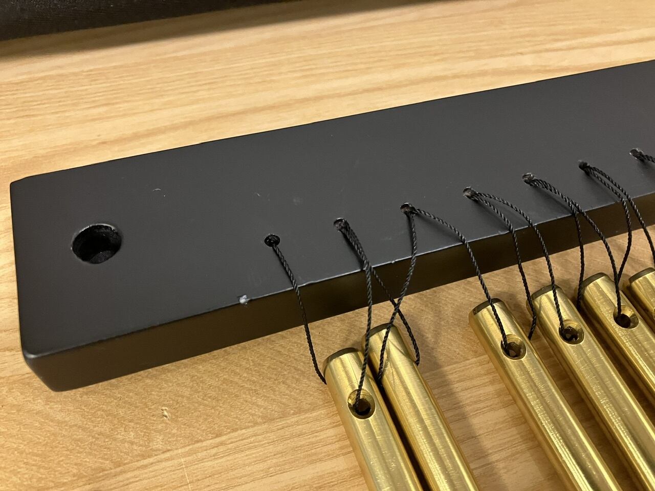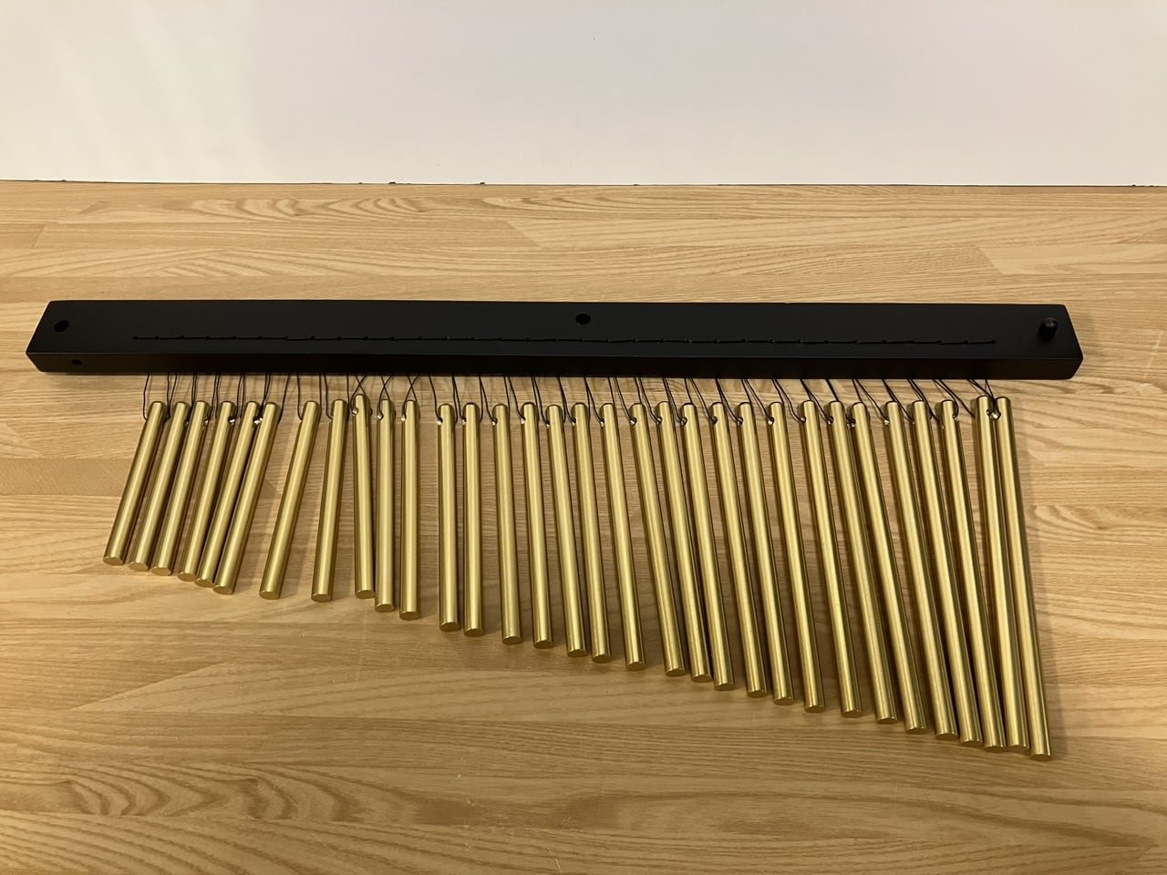 ツリーチャイムをバーに対して水平に結ぶ方式で、チャイムの自然な鳴りを生かしつつ、揺れを適度にコントロールできるモデル。