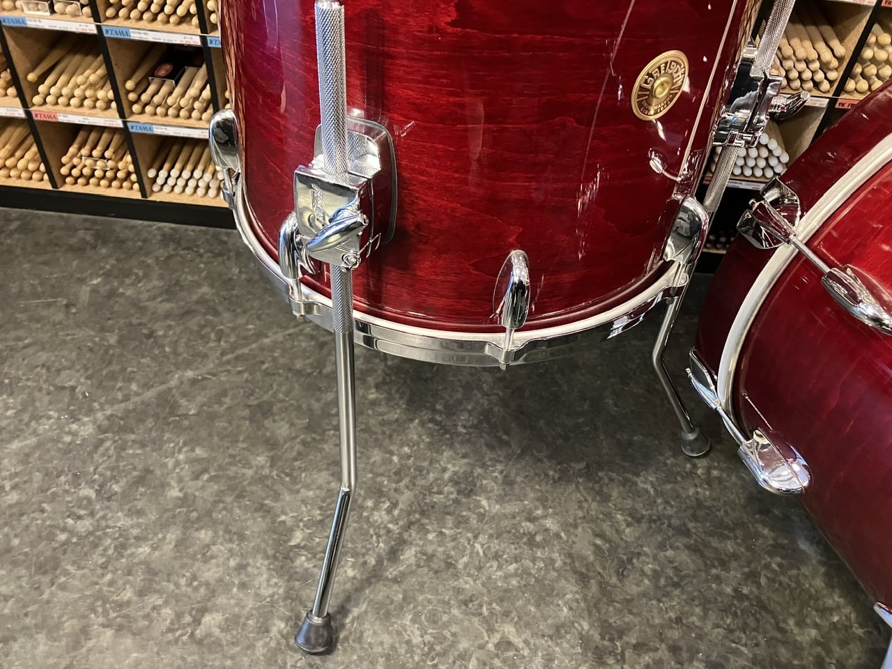 今回入荷のセットは18 × 14のバスドラムに、14 × 14のフロアタム、12 × 8のタムという、一般にBOPキットと呼ばれる、伝統的な3点セット。