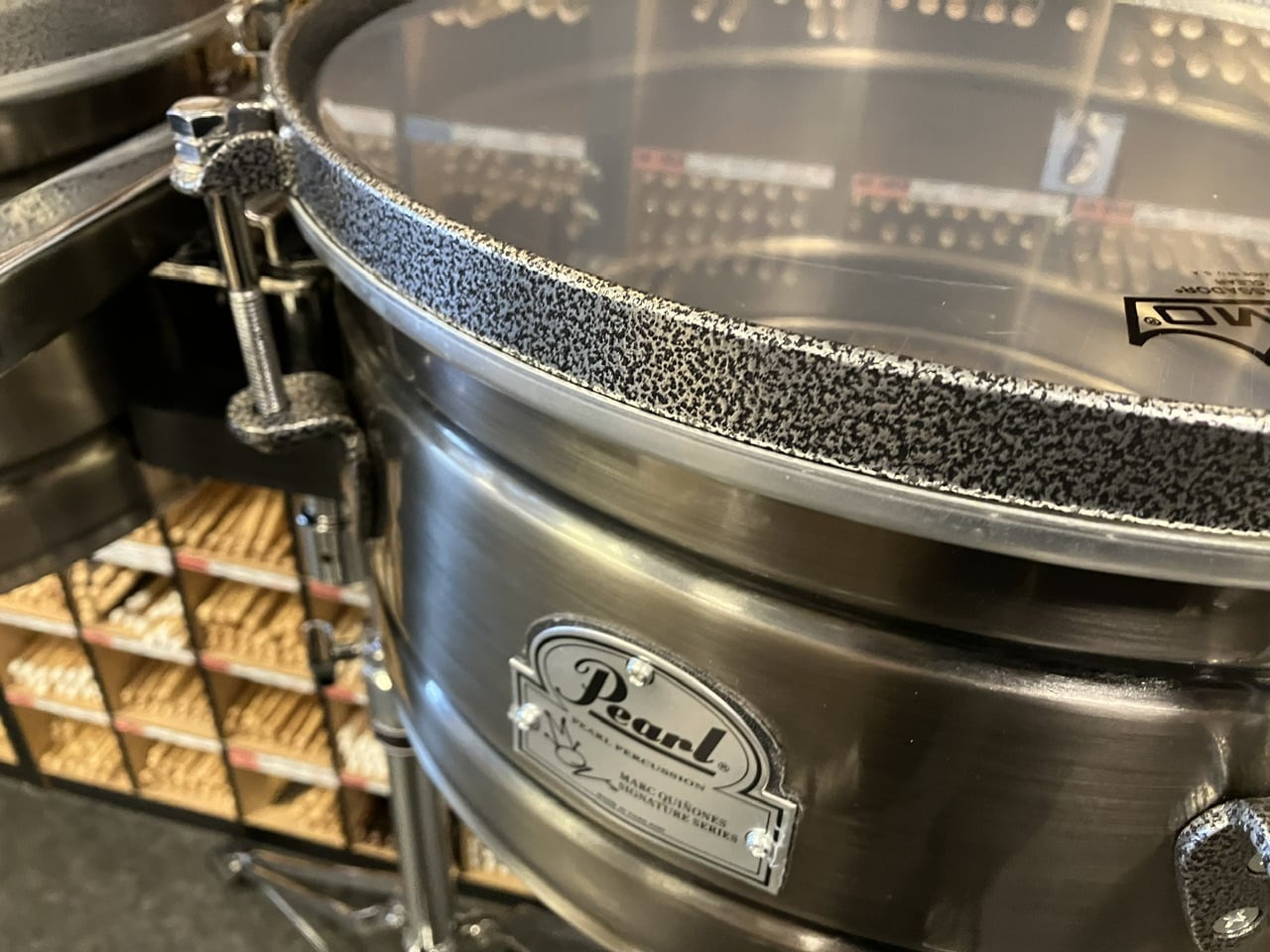 現代を代表するパーカッショニストの一人であるマーク・キノーネスと共同で設計されたこのティンバレス・セットは、レモ・クリア・アンバサダー・ヘッドを装着した標準的な14インチと15インチのドラム、ダブルブレース式のチルトスタンド、そして当社のベストセラーであるPBL-30クラベ・ブロックで構成されています。