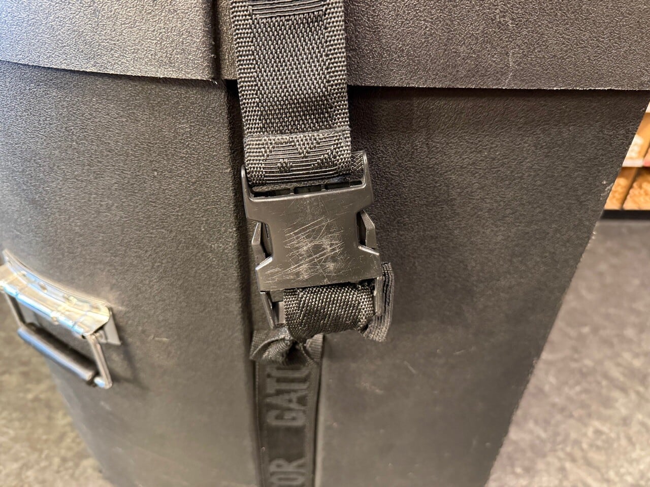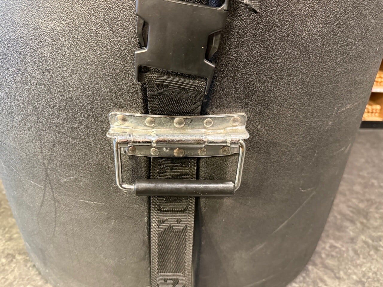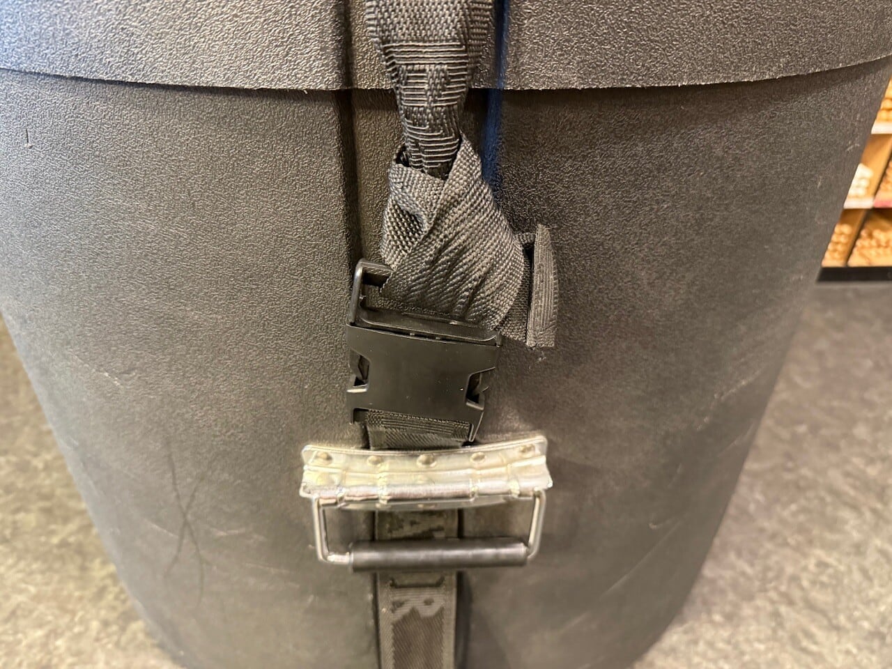 外側のベルトを止めるバックルパーツのうち2つに割れがあり、ベルトを結ぶ形で固定しています。