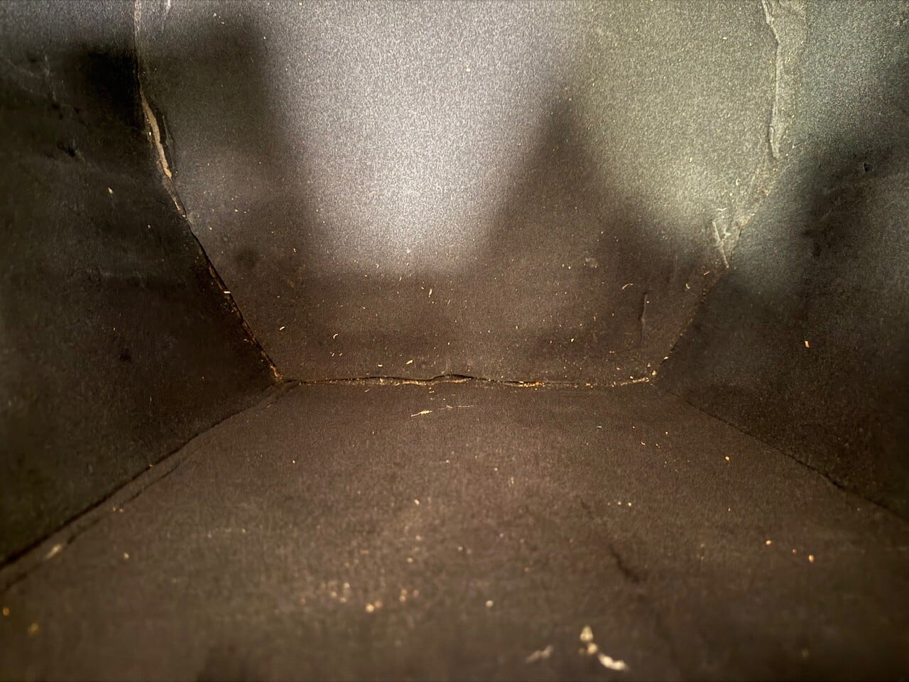 内側のクッションにはダメージと、一部に細かい剥がれがございます。