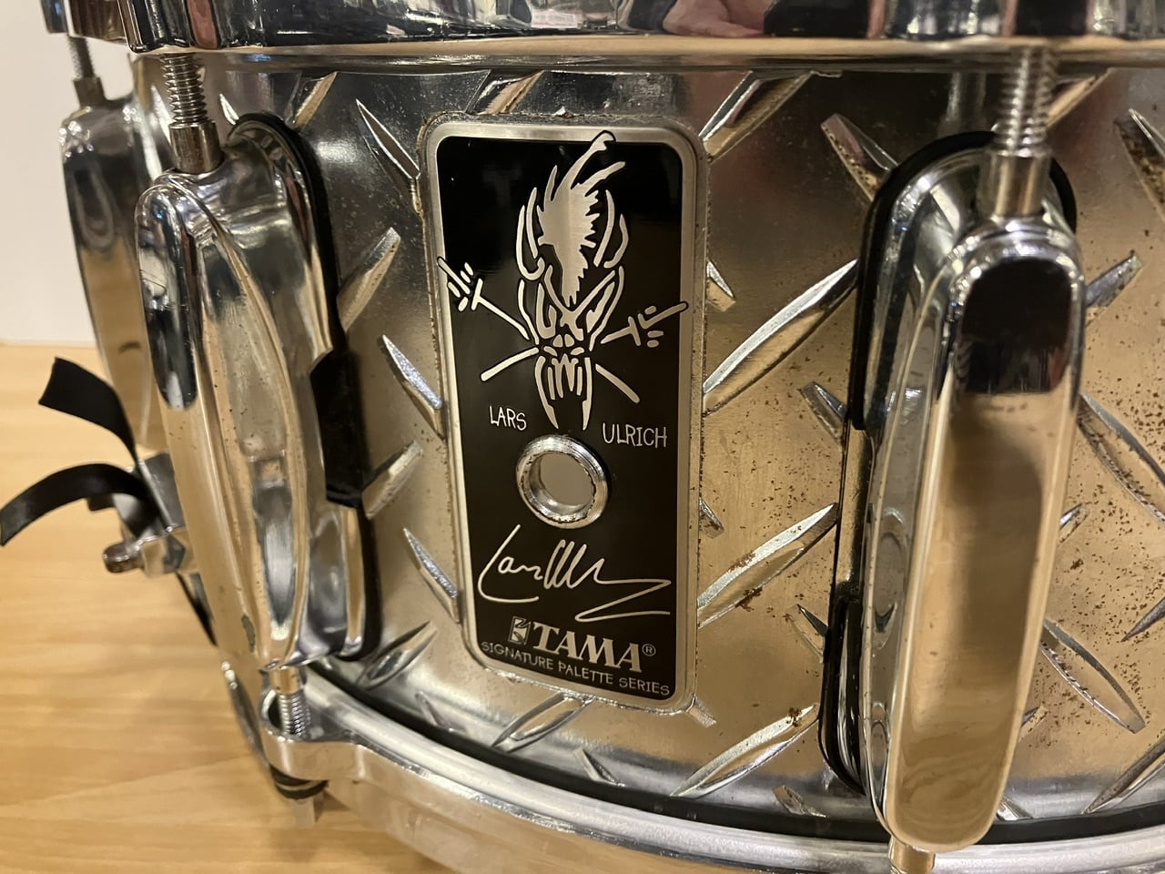 圧倒的パワーの爆音スネアとして、長年に渡り沢山のドラマーに愛されるTAMAの名機 ラーズ ウルリッヒ シグネチャー スネアドラムの初期型[lLU1465]がUSEDで入荷しました。