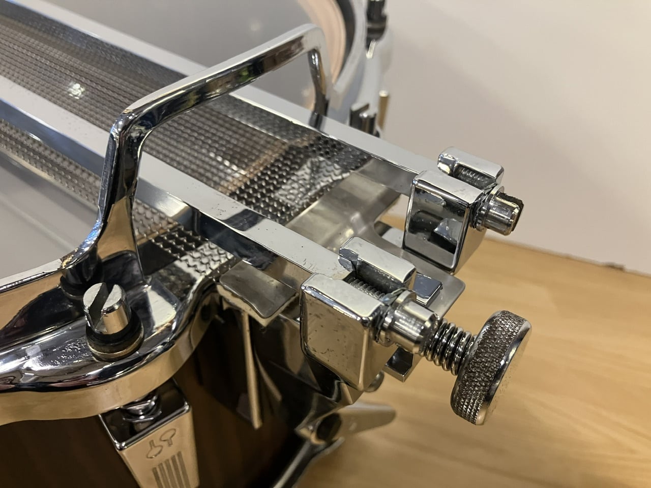 シグネチャーの代名詞と言える全面当たり式スネアワイヤーシステム[パラレル アクション]は、調節ネジを含め曲がりなども一切無い完璧な保存状態です。