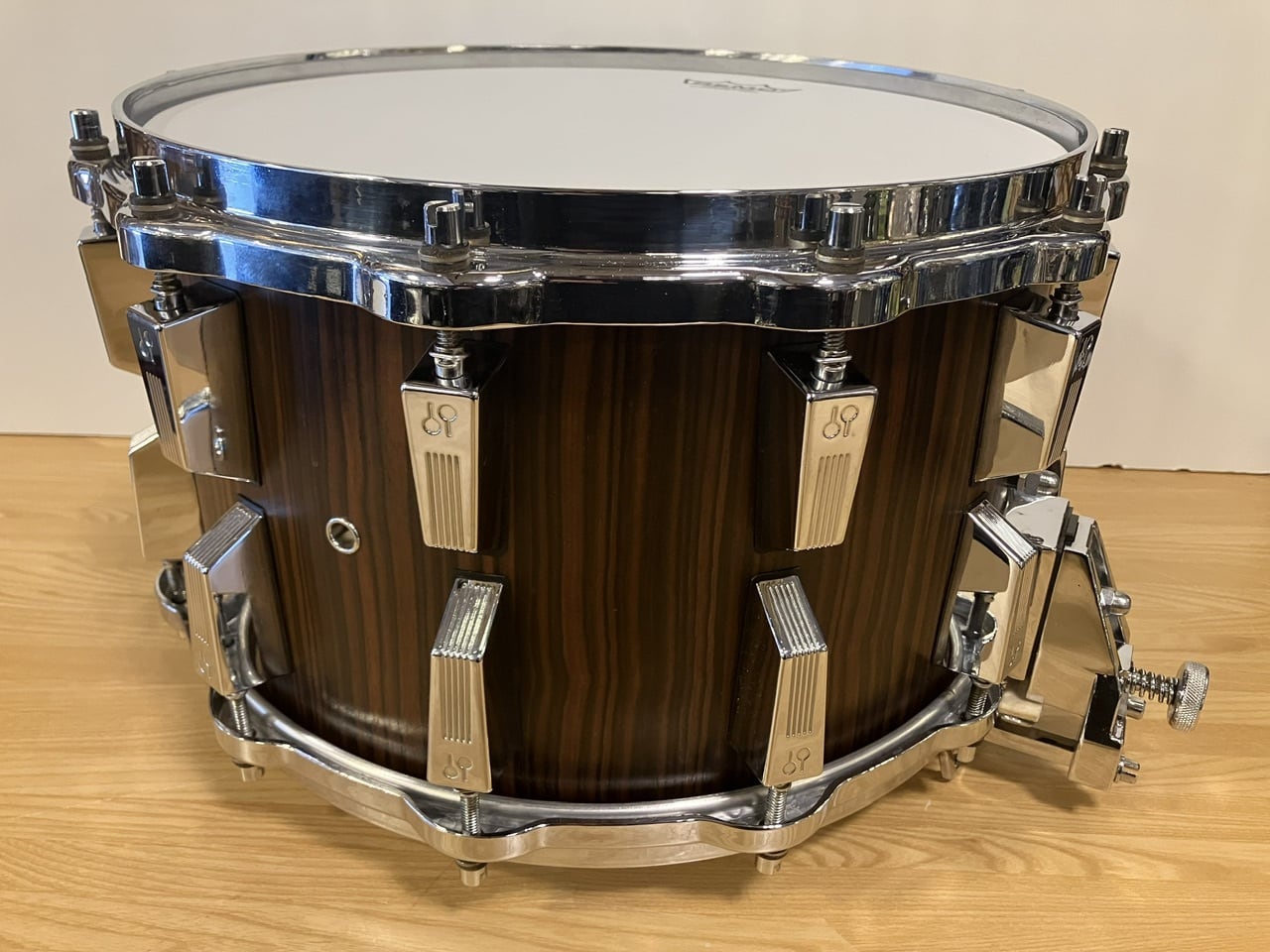 極厚ヘビービーチシェルが生み出す説得力抜群の芯の太さ、8"ならではの圧倒的パワーを誇る太いトーンと、その深さを感じさせない程の響き線のレスポンスの良さと、説得力抜群の明確な粒立ち、真っ直ぐで力強い音ヌケと、あらゆる部分で優れている、まさにハイレベルなサウンドとなっております。