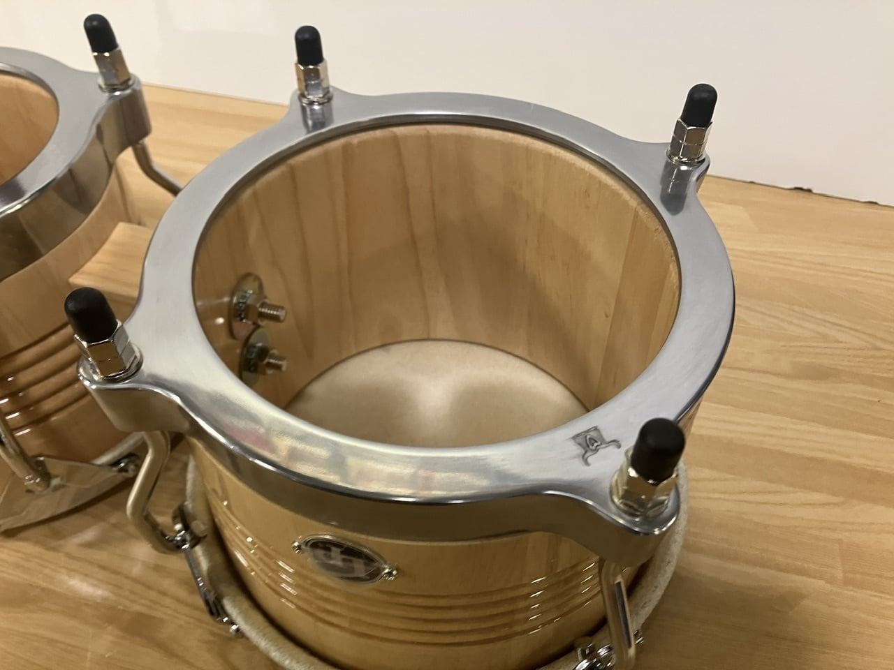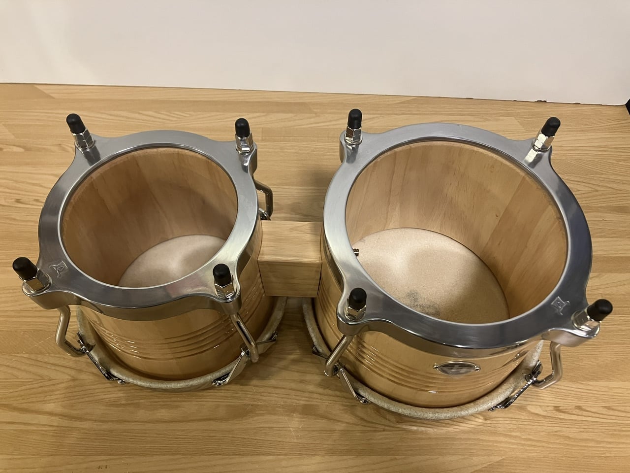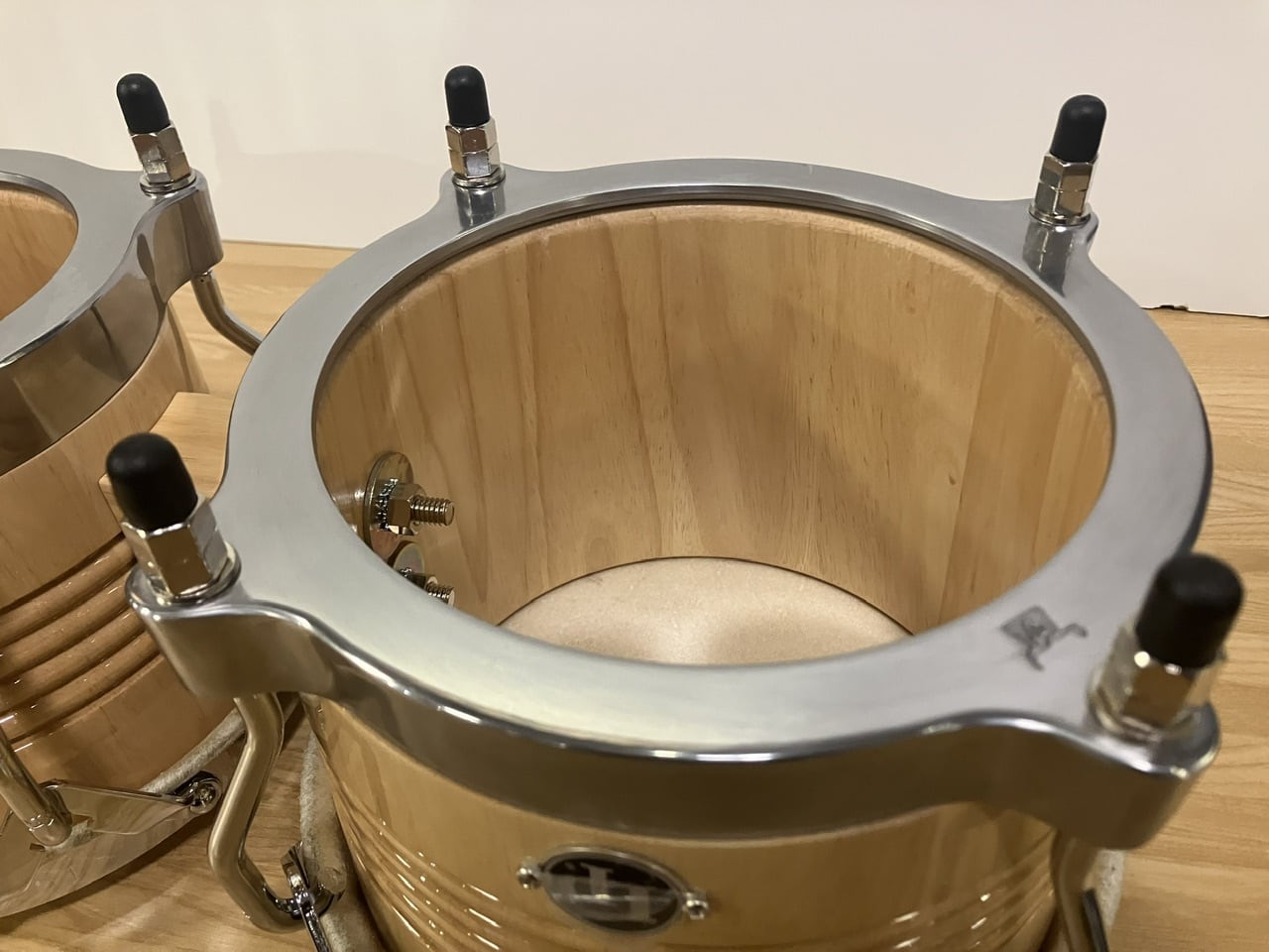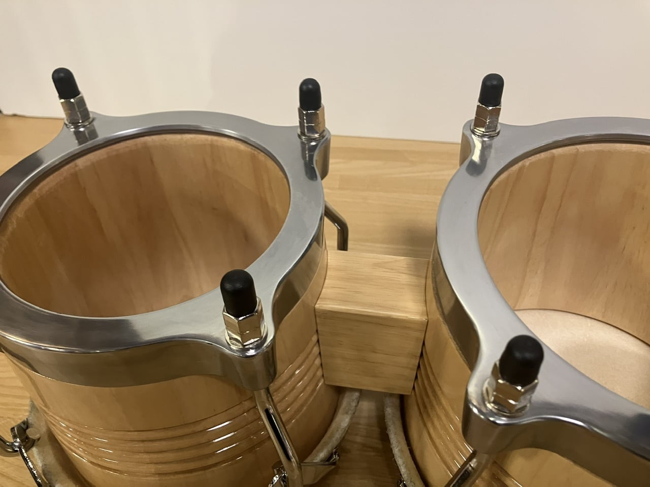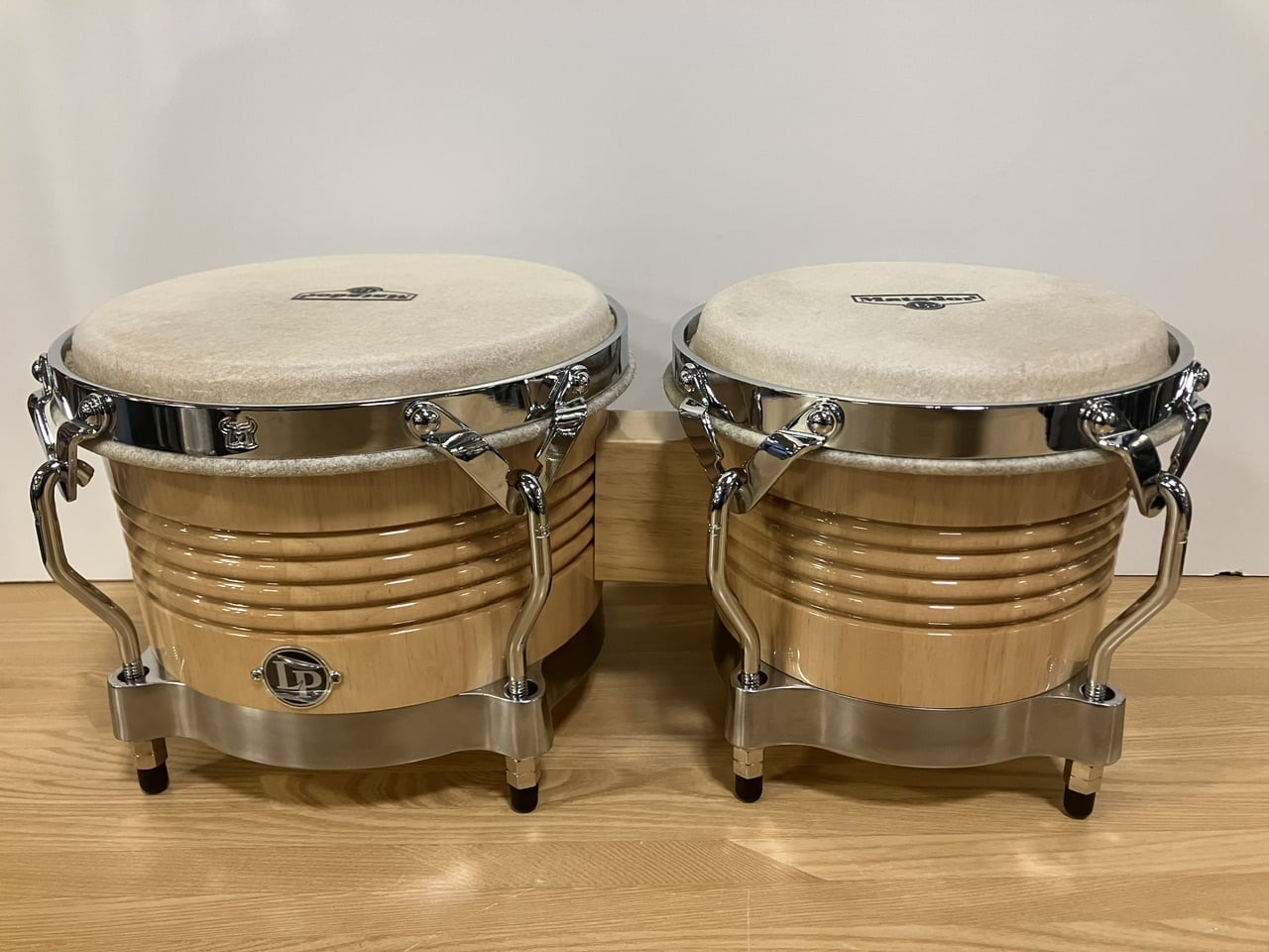 LPのミドルクラス "マタドール"のウッドボンゴは、 オーク材のシェルが最も標準的な7+1/4″ と 8+5/8″口径の組み合わせになっており、十分な広さのおかげで演奏上もストレスがありません。