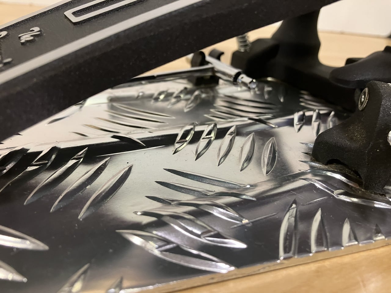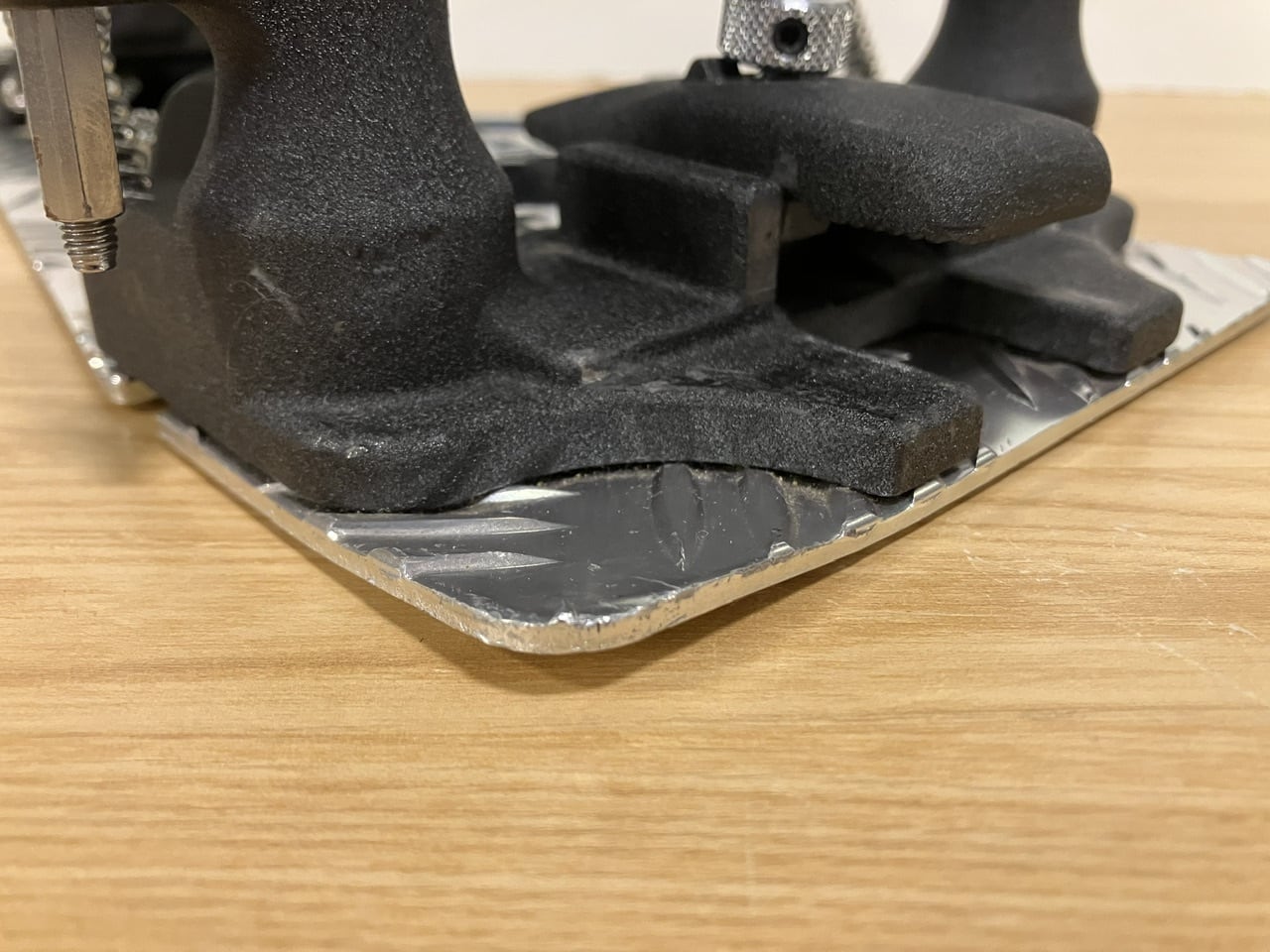 また、アンダープレート前方の左が、衝撃によるものと思われる、変形がございますが、セッティング時の安定感に問題はございません。