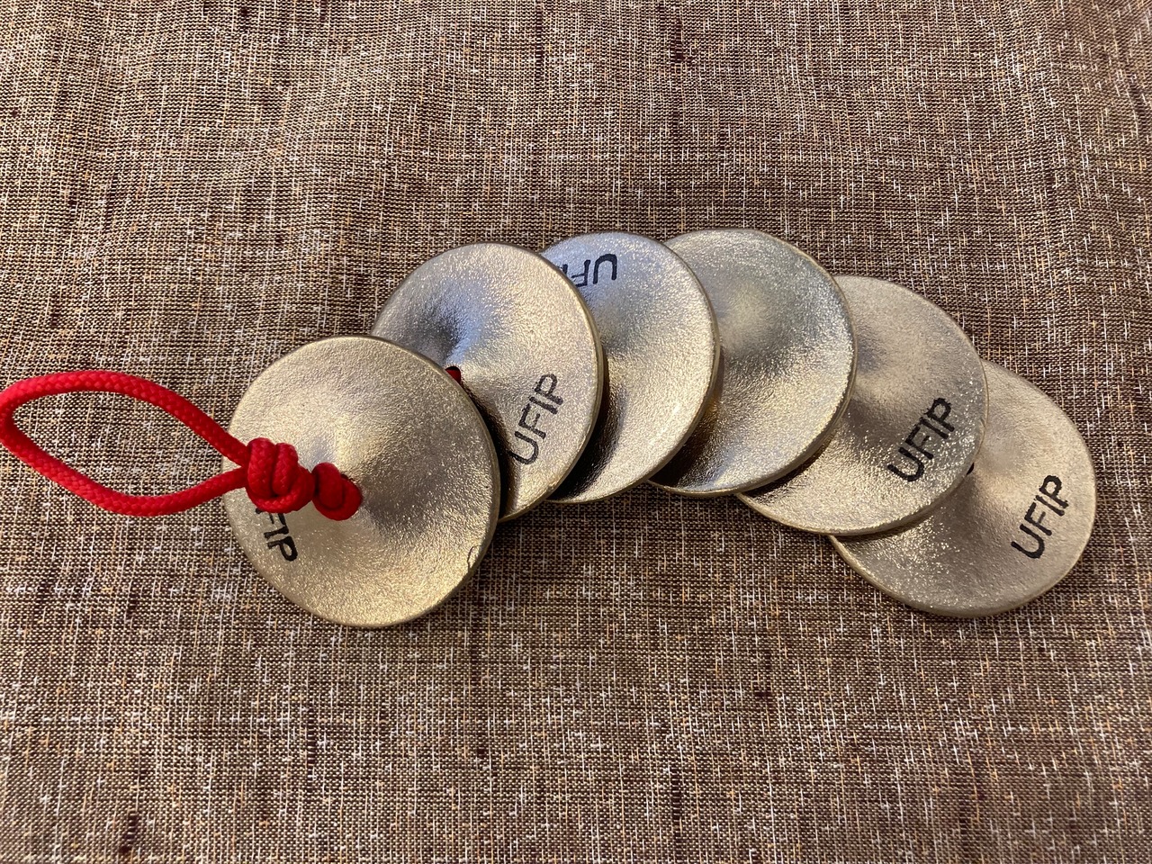 3種類のサイズのベルを紐でつるしたベル・ツリーです。