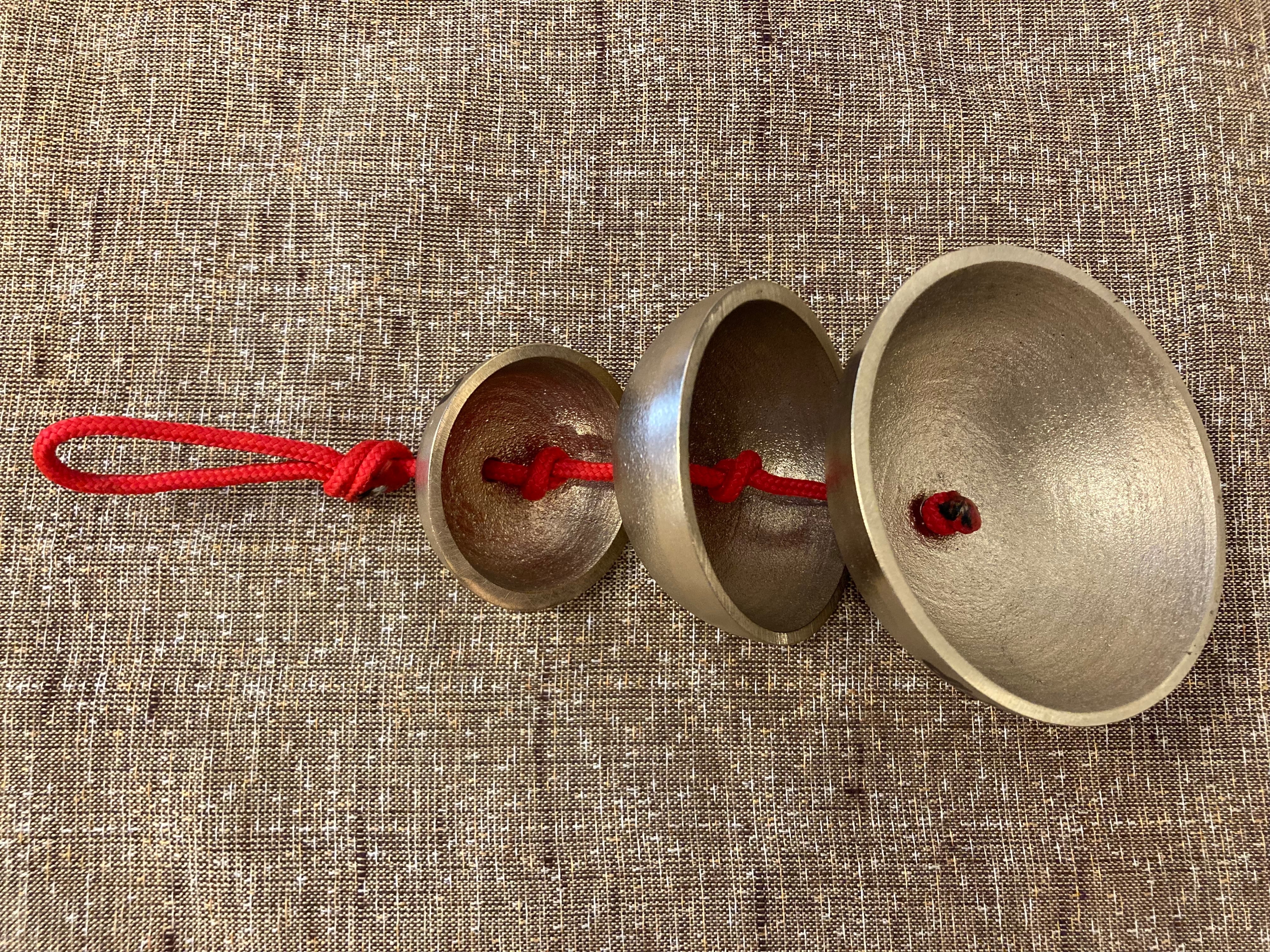 ツリーディスクよりも叩く面積が広くなりのでトライアングルビーターだけに限らず、様々なサイズのスプーンでも使用可能、ビーターやスプーンによって倍音が異なり非常に奥が深いベルです。