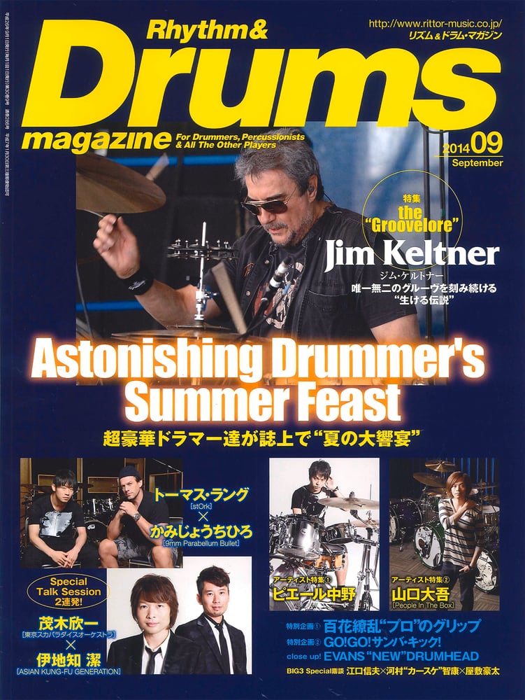 “伝承”をテーマに、偉大なるドラマー達の魅力にあらためて迫るthe“Groovelore”。その第二弾としてフィーチャーするのは、ボブ・ディラン、ジョン・レノン、ジョージ・ハリスン、エリック・クラプトンなど、レジェンド・アーティスト達を支えてきたジム・ケルトナー。60年代にキャリアをスタートさせ、72歳となった現在も第一線でバリバリ活躍する“生ける伝説”だ。目玉は彼が自身のキャリアについて語った超ロング・インタビュー。タイム、グルーヴに関する話は、ドラマーはもちろん、全ミュージシャン必見。その他にケルトナー・フォロワーである玉田豊夢×伊藤大地の対談や、沼澤 尚監修のディスコグラフィ、名演分析など、14ページに渡る充実の内容となっております!