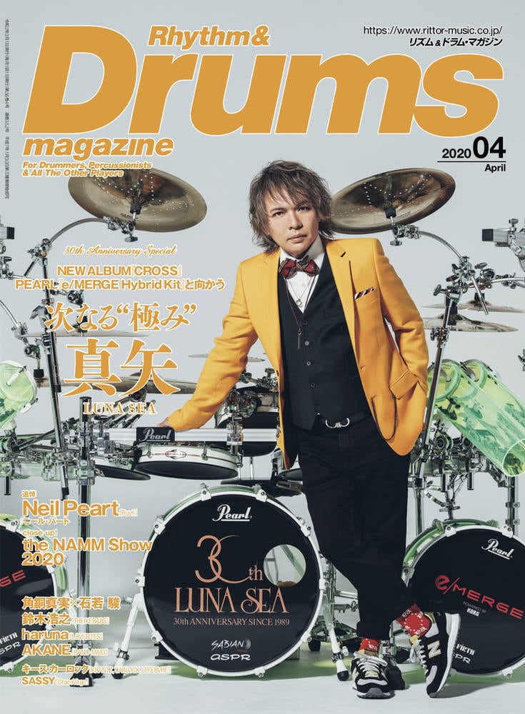 表紙は、1989年のバンド結成より30年というメモリアル・イヤー真っ最中のLUNA SEA 真矢。グラミー5度の受賞を誇る名手=スティーヴ・リリーホワイトをプロデューサー&ミキシング・エンジニアに迎えて制作した10thアルバム『CROSS』を軸に、パールの電子ドラムe/MERGEを導入した経緯や、ライヴで活躍しているという最新ハイブリッド・セッティングの詳細解説など、ドラマー真矢の"現在"に迫る!