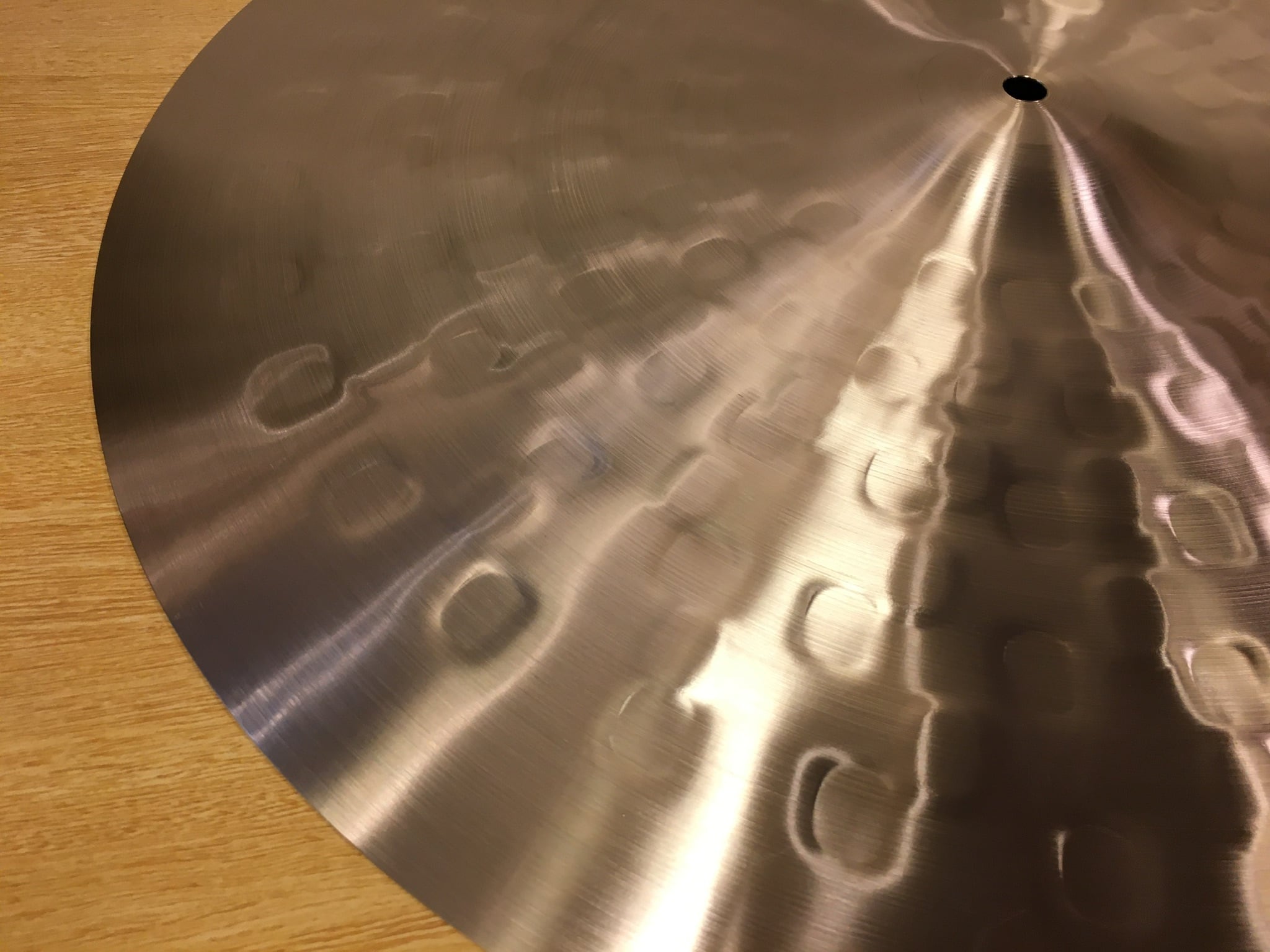 22"で2227gと極薄ウェイトが特徴で、クラッシュが抜群の上品な大口径ライドとしてでなく、マレットでの深い響きも魅力的で多彩な表現力を持つ非常に珍しいシンバルです。