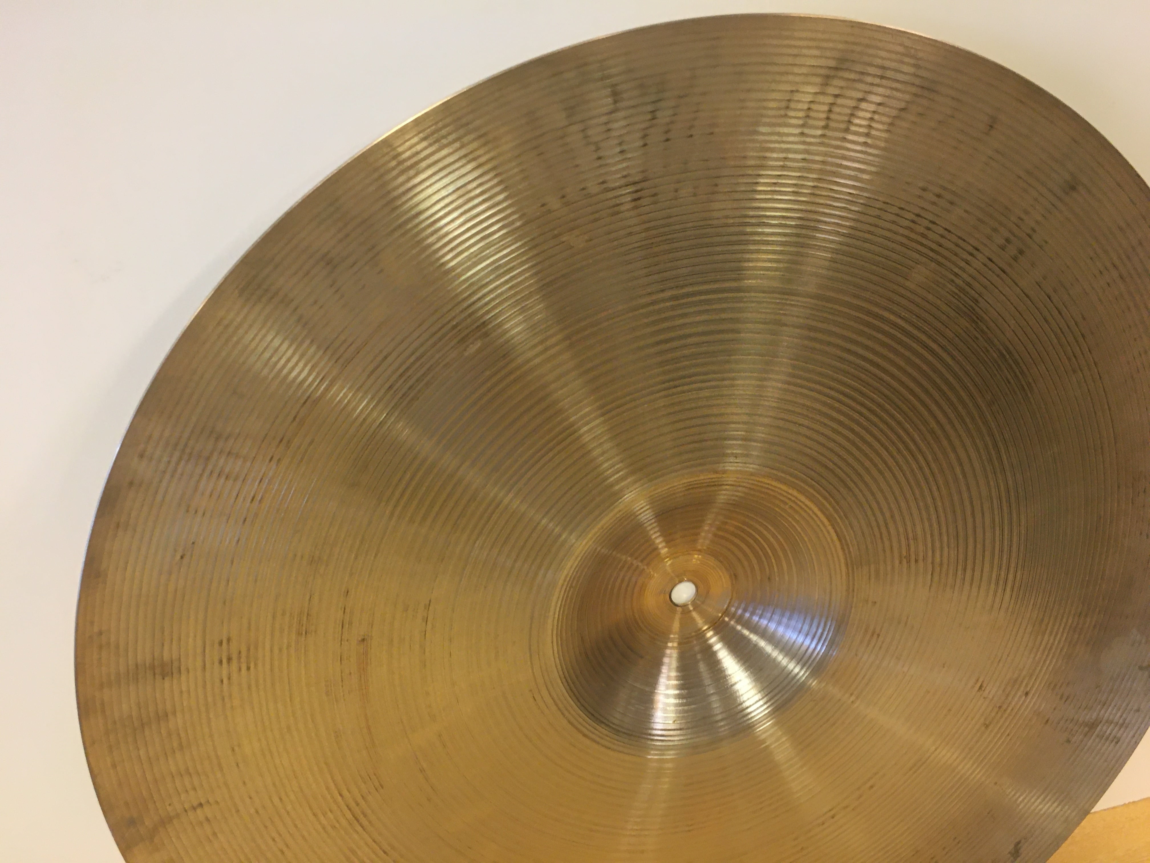 年代相応の汚れなどはありますが、珍しく表面のロゴもハッキリ残っており比較的状態の良いヴィンテージ シンバルです。
