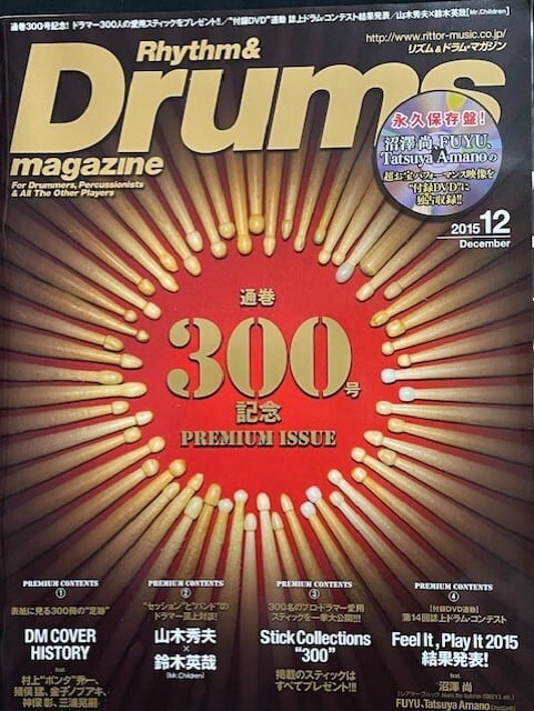 本号で通巻300号を記念して、4つの“プレミアム”な特集をお届け! その1つ目=PREMIUM CONTENTS①は、ドラム・マガジンを彩ってきた全表紙を一挙に掲載!! その歴史を紐解いていく。後半には、最多表紙アーティストである村上“ポンタ”秀一を筆頭に、本誌の“記憶”と共に“記録”に残るドラマー達のコメントも紹介。