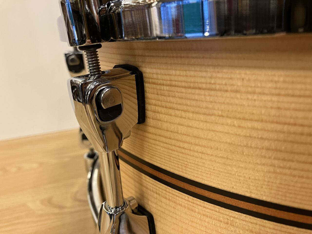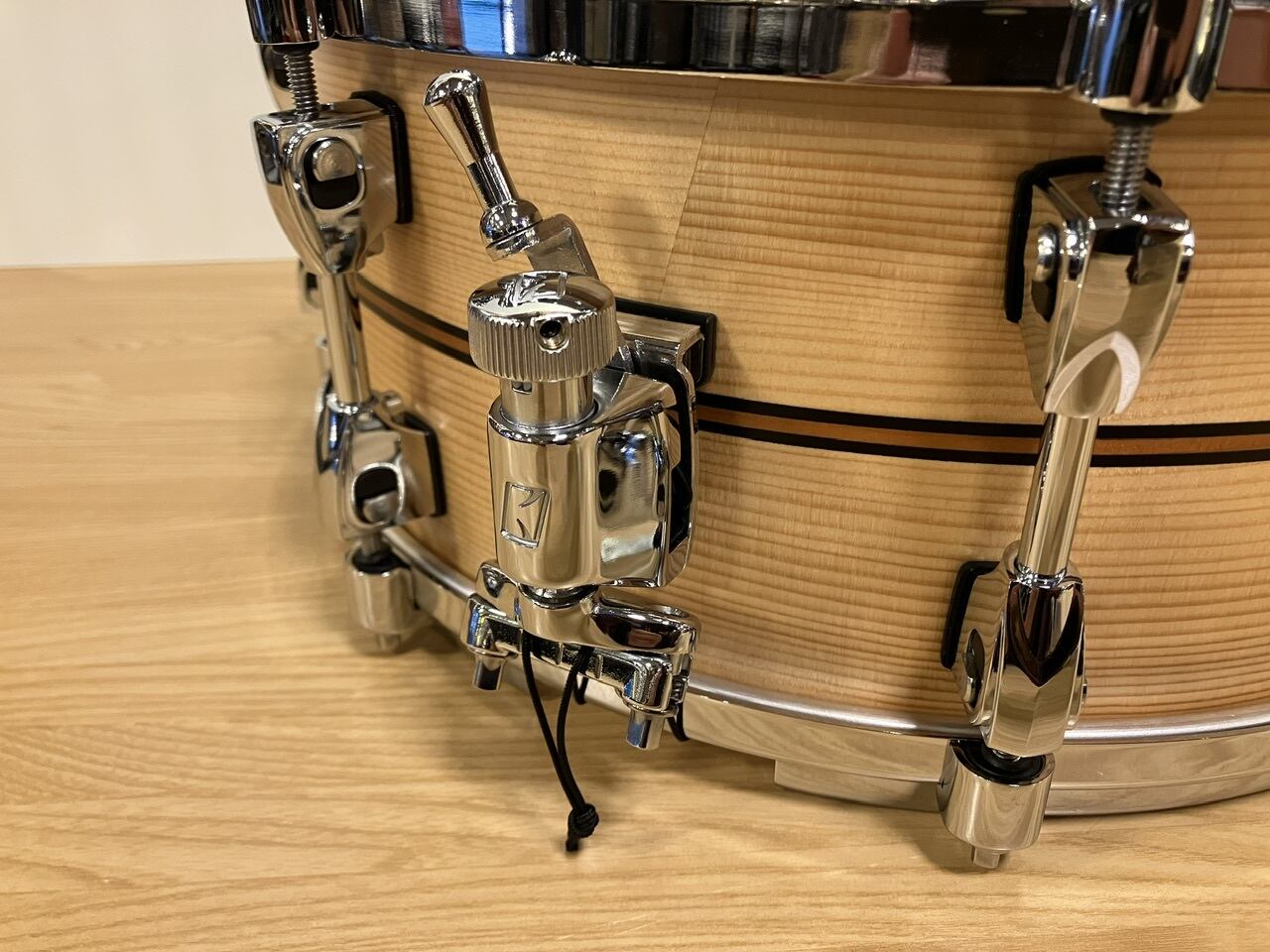 アコースティックギターのトップ材としても用いられるスプルースをシェル材に使用したスネアドラムです。